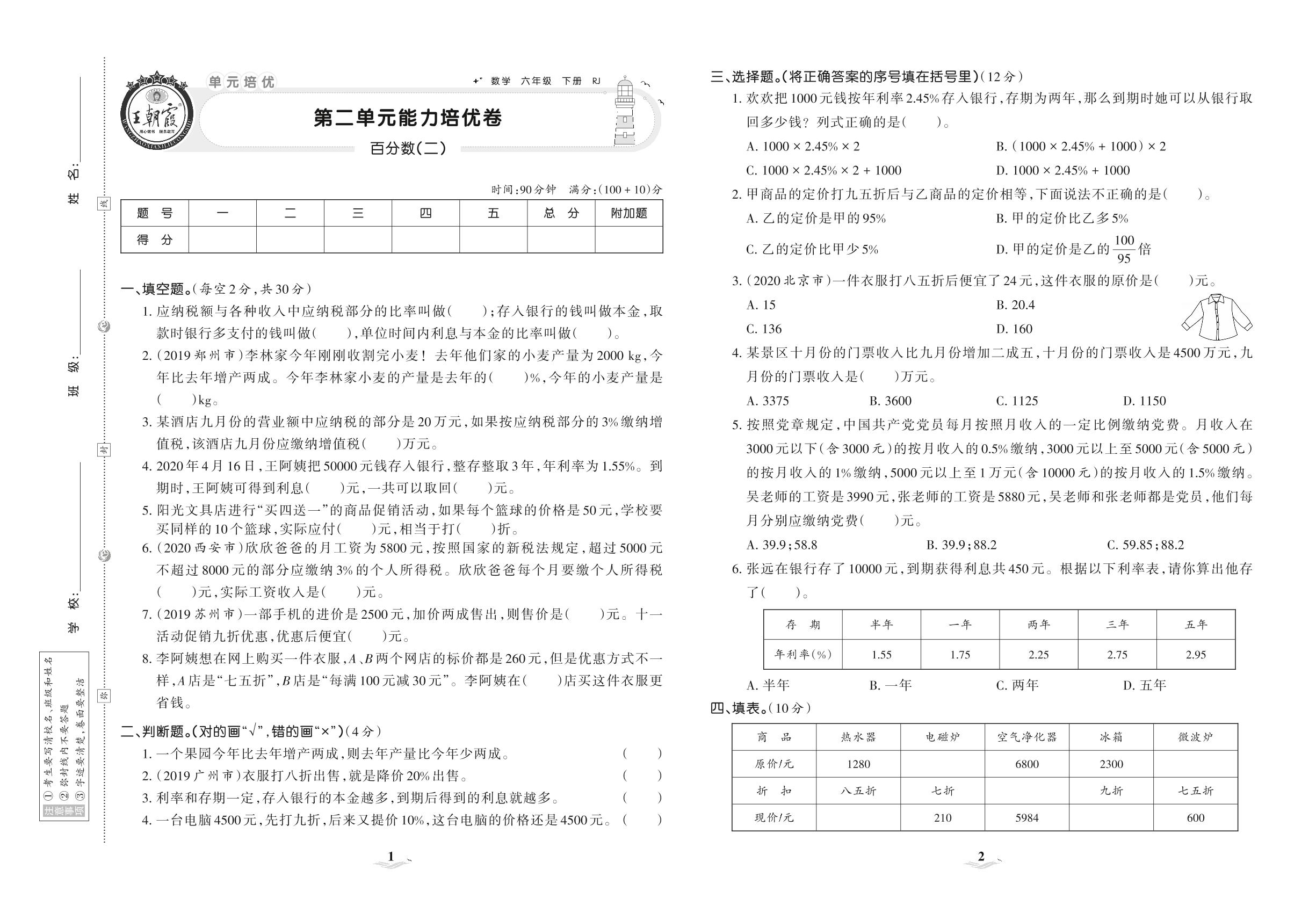 2021下册六年级数学人教版 第二单元 能力培优卷