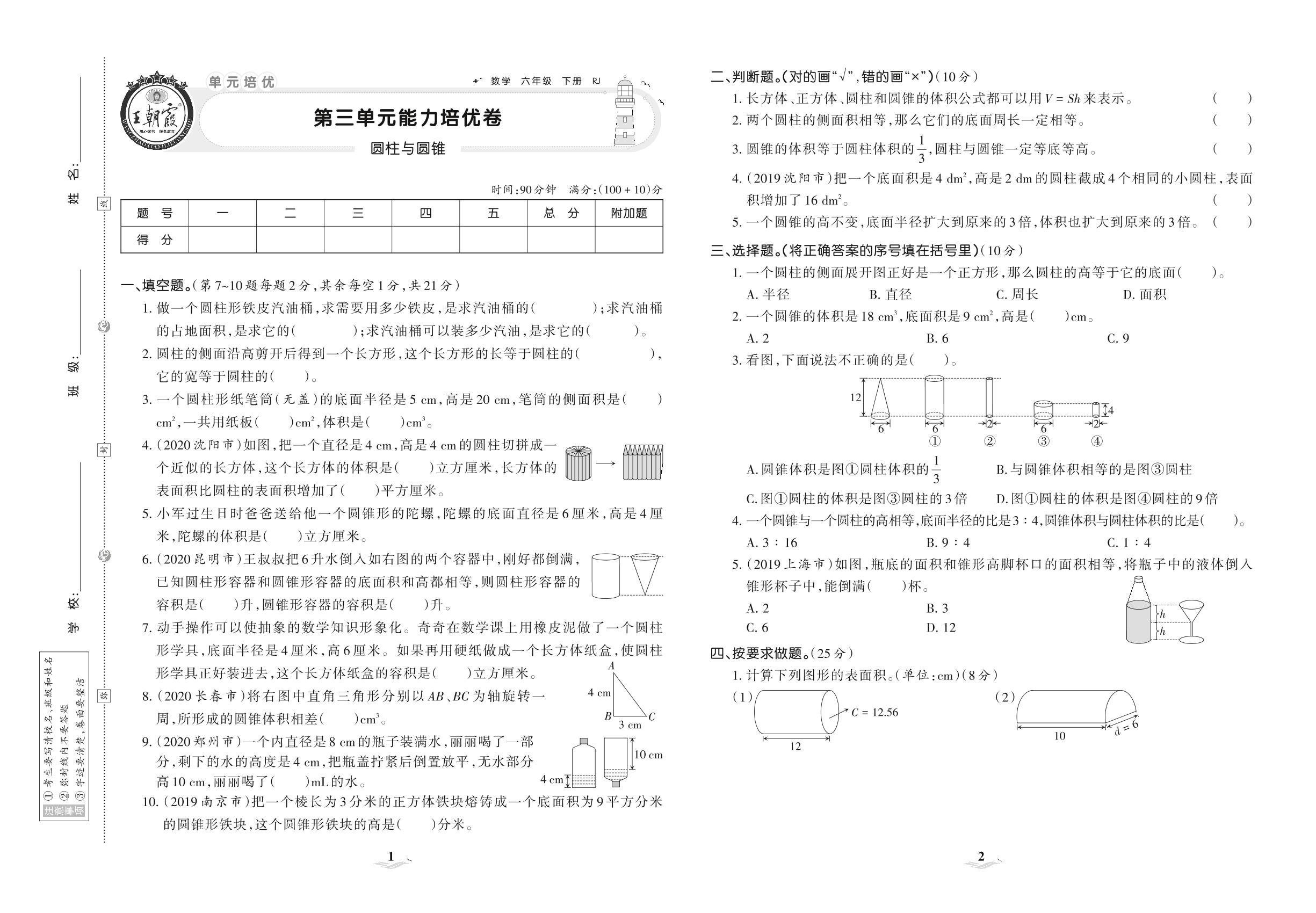 2021下册六年级数学人教版 第三单元 能力培优卷