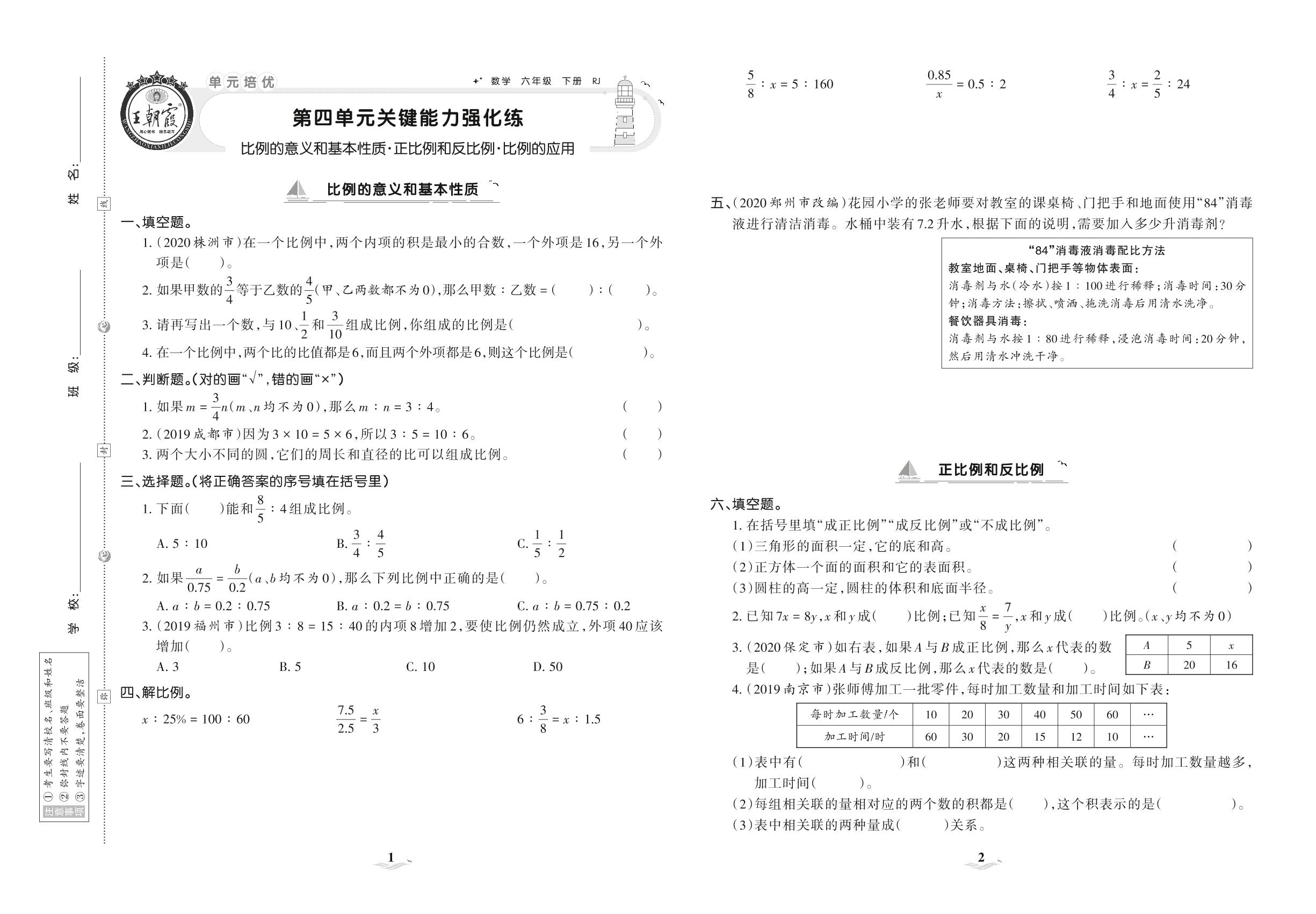 2021下册六年级数学人教版 第四单元 关键能力强化练