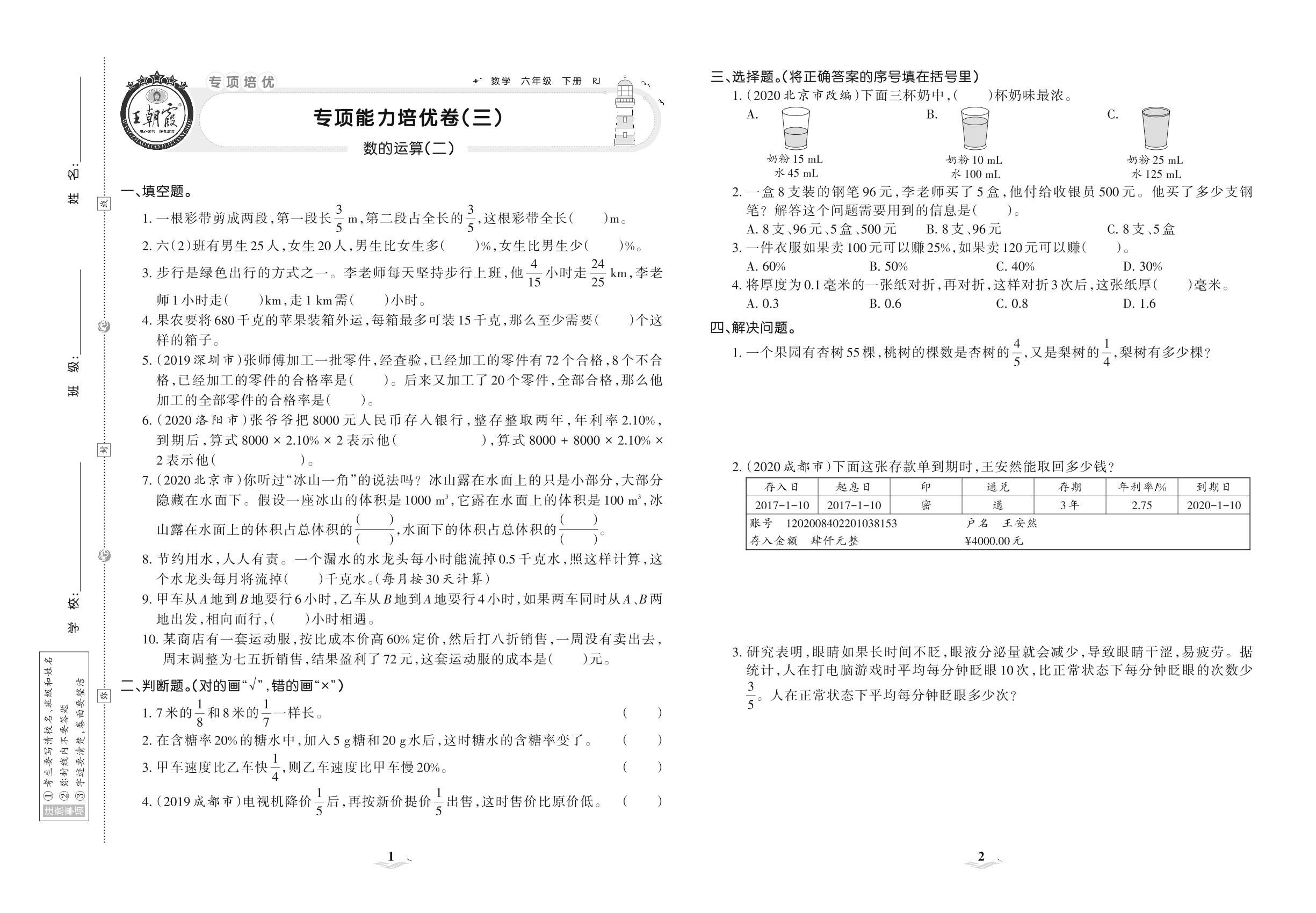 2021下册六年级数学人教版 专项能力培优卷(三) 数的运算(二)