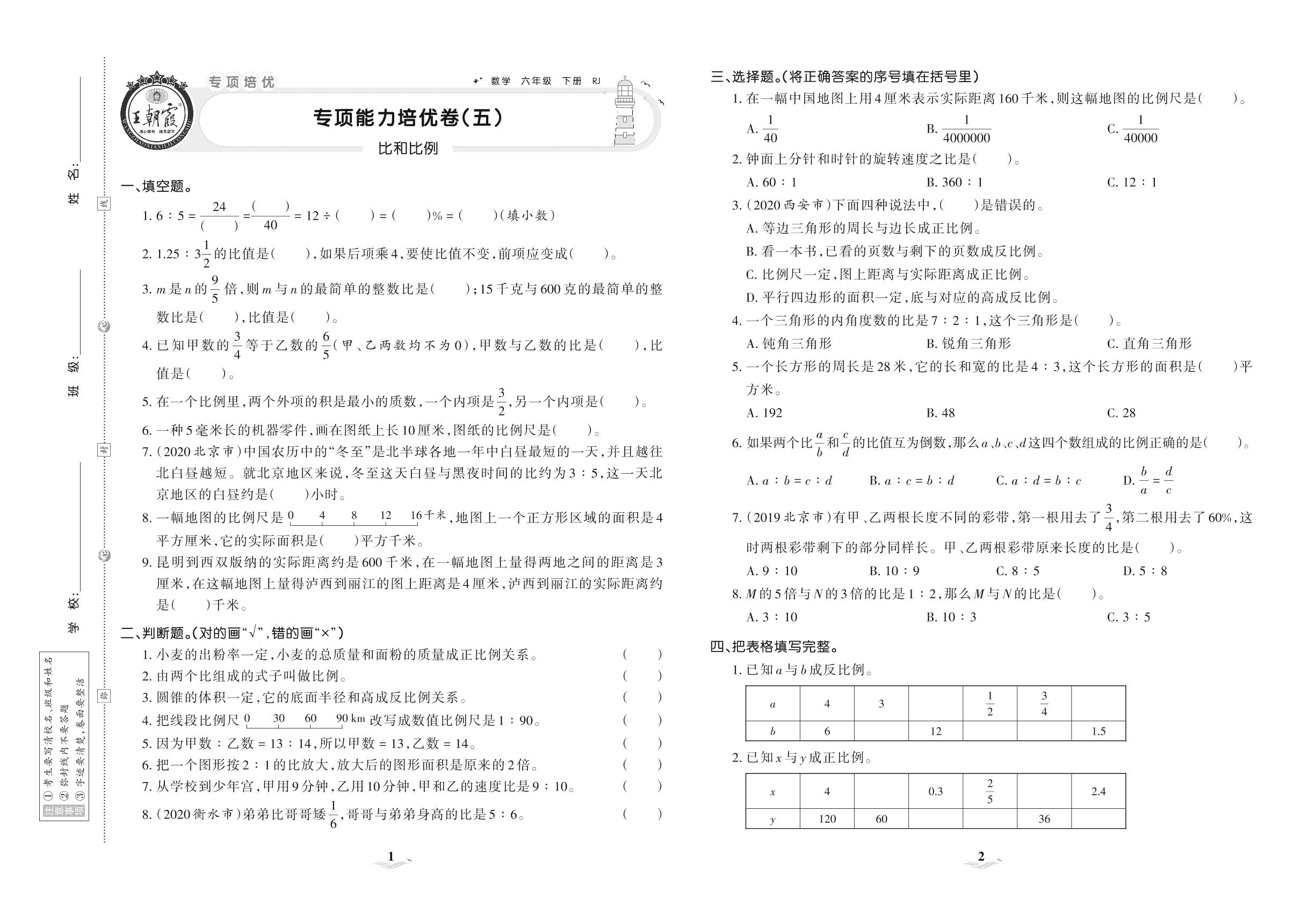 2021下册六年级数学人教版 专项能力培优卷(五) 比和比例