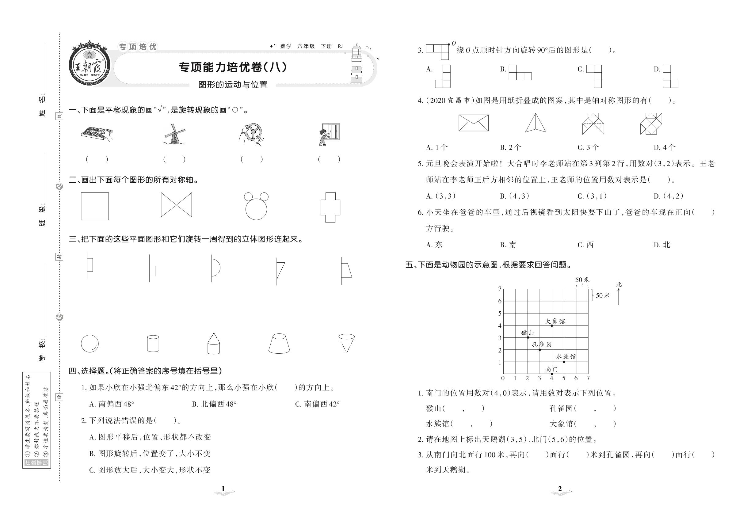 2021下册六年级数学人教版 专项能力培优卷(八) 图形的运动与位置