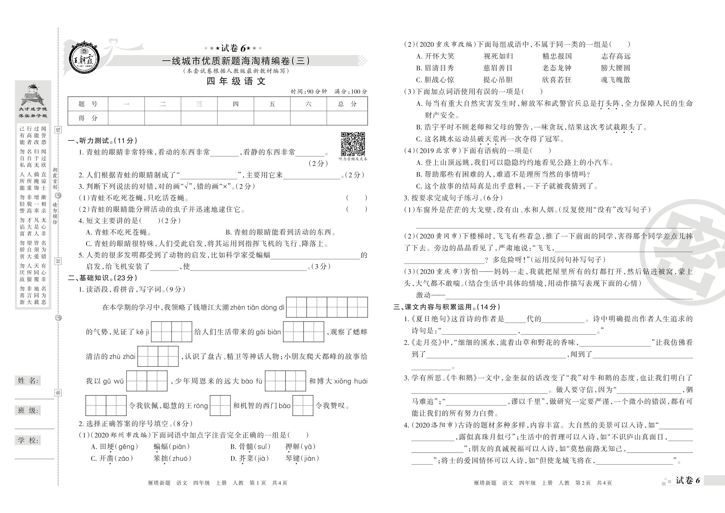 王朝霞海淘期末精编卷四年级上册语文(人教版)【6】