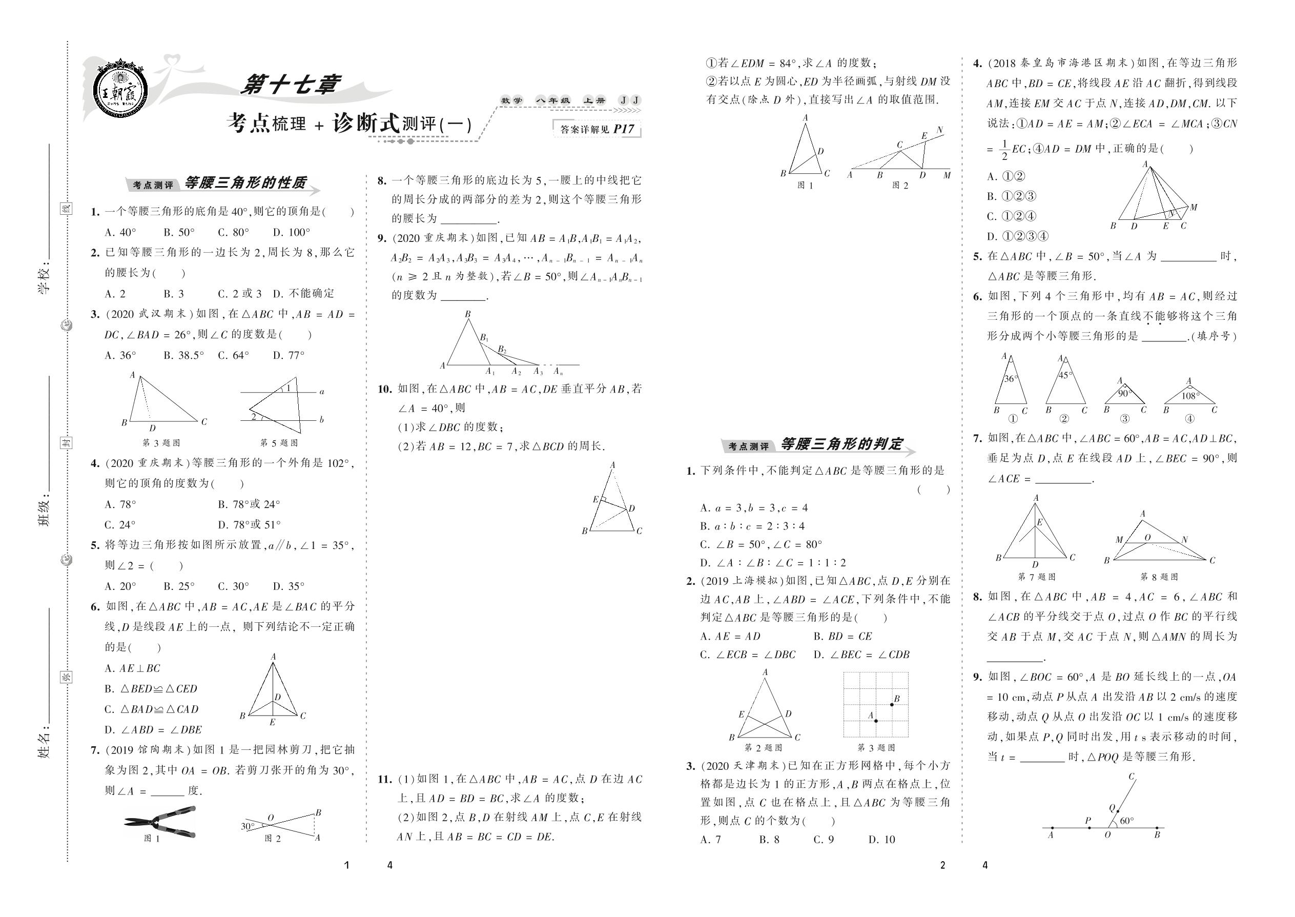 2020上册八年级数学冀教版 第十七章 考点梳理 + 诊断式测评(一)
