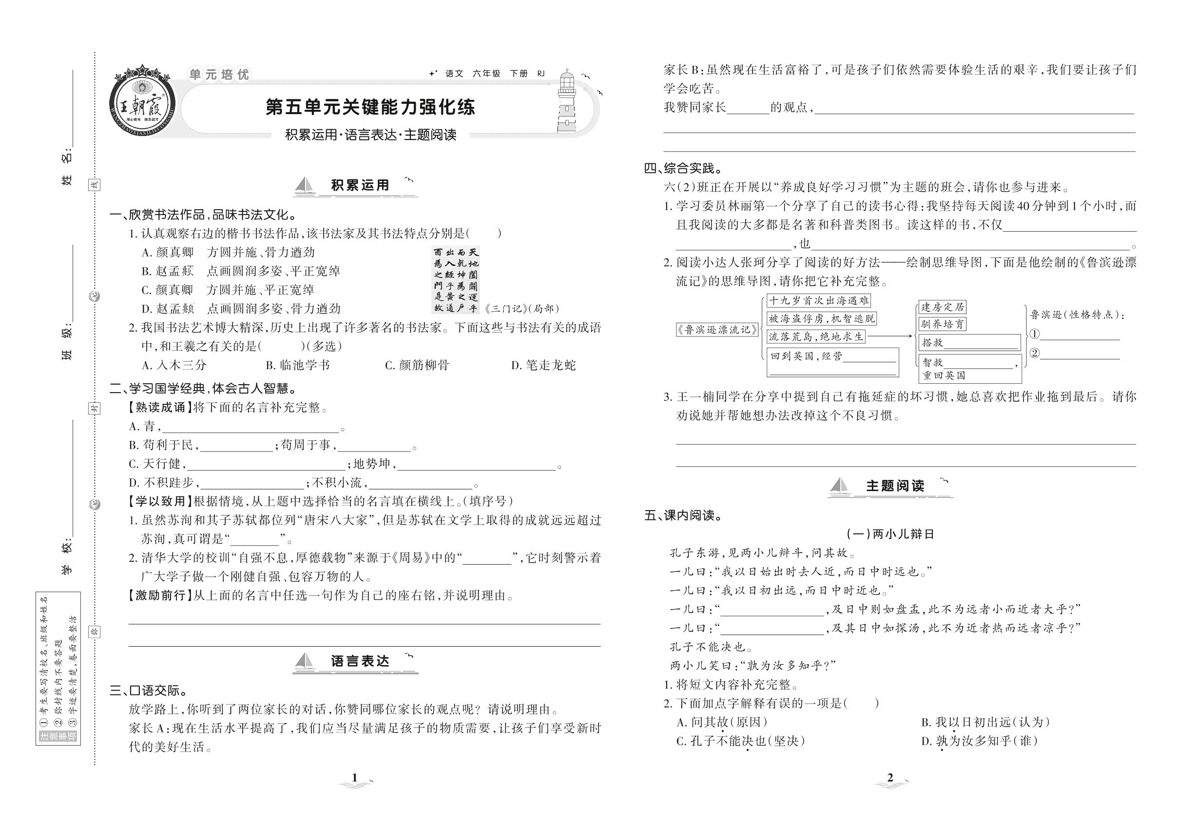 2021下册六年级语文人教版 第五单元 关键能力强化练