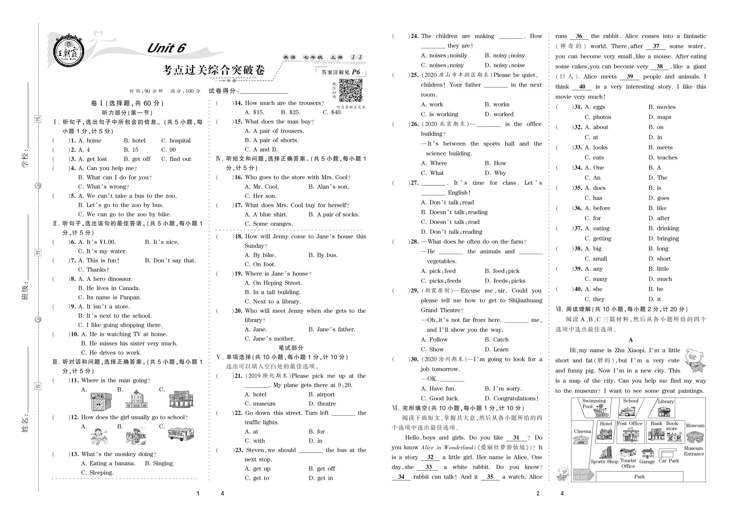 2020上册七年级英语冀教版 Unit 6 考点过关综合突破卷