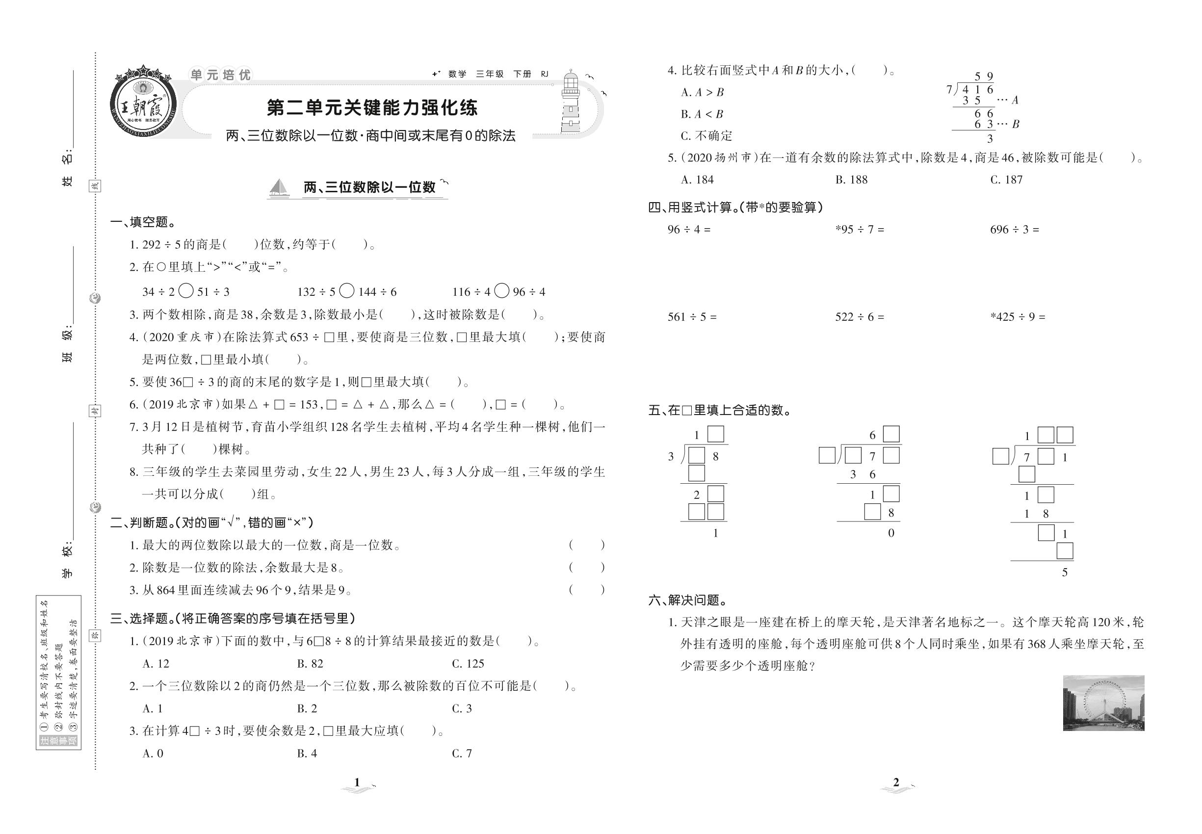 2021下册三年级数学人教版 第二单元 关键能力强化练
