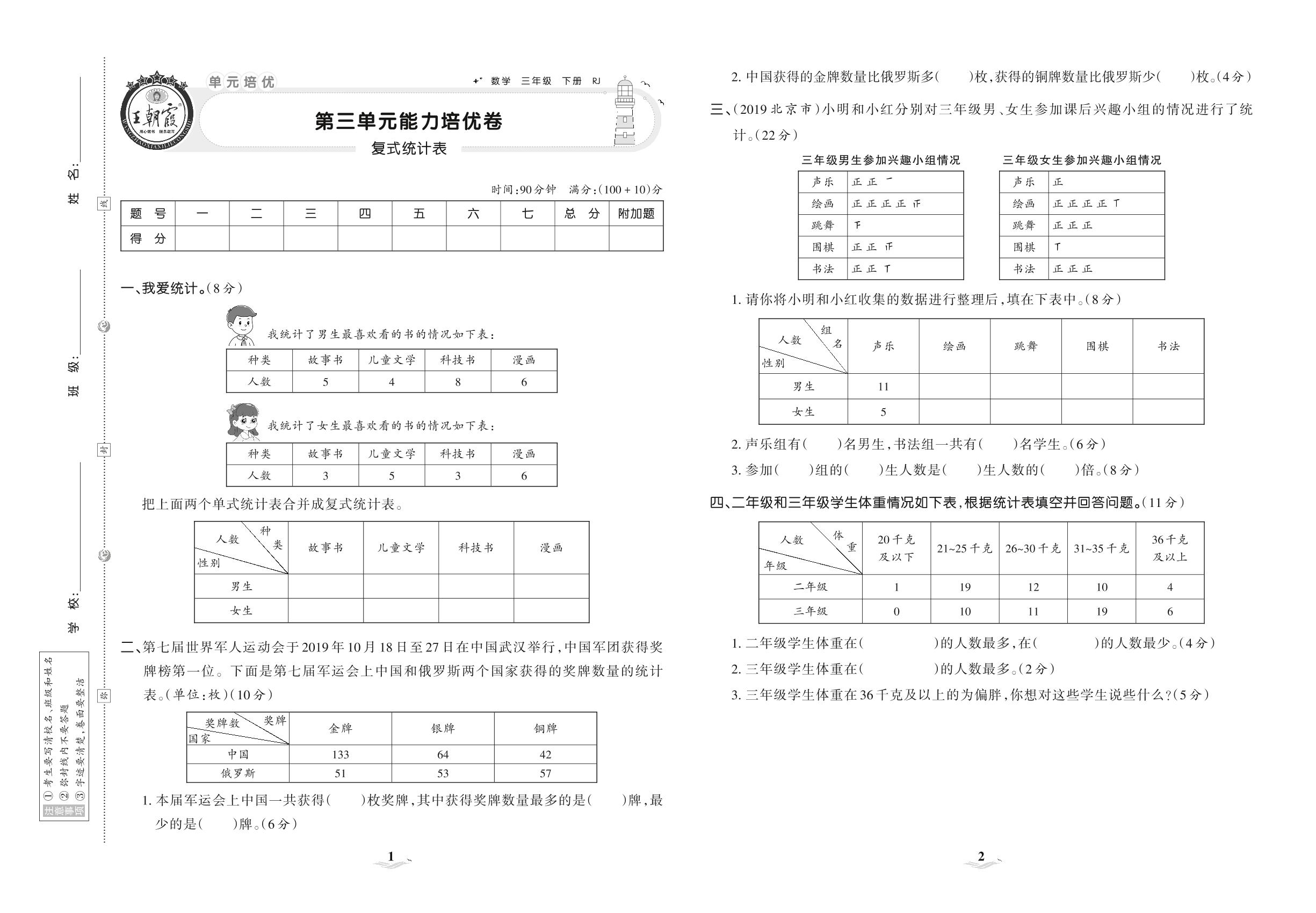 2021下册三年级数学人教版 第三单元 能力培优卷