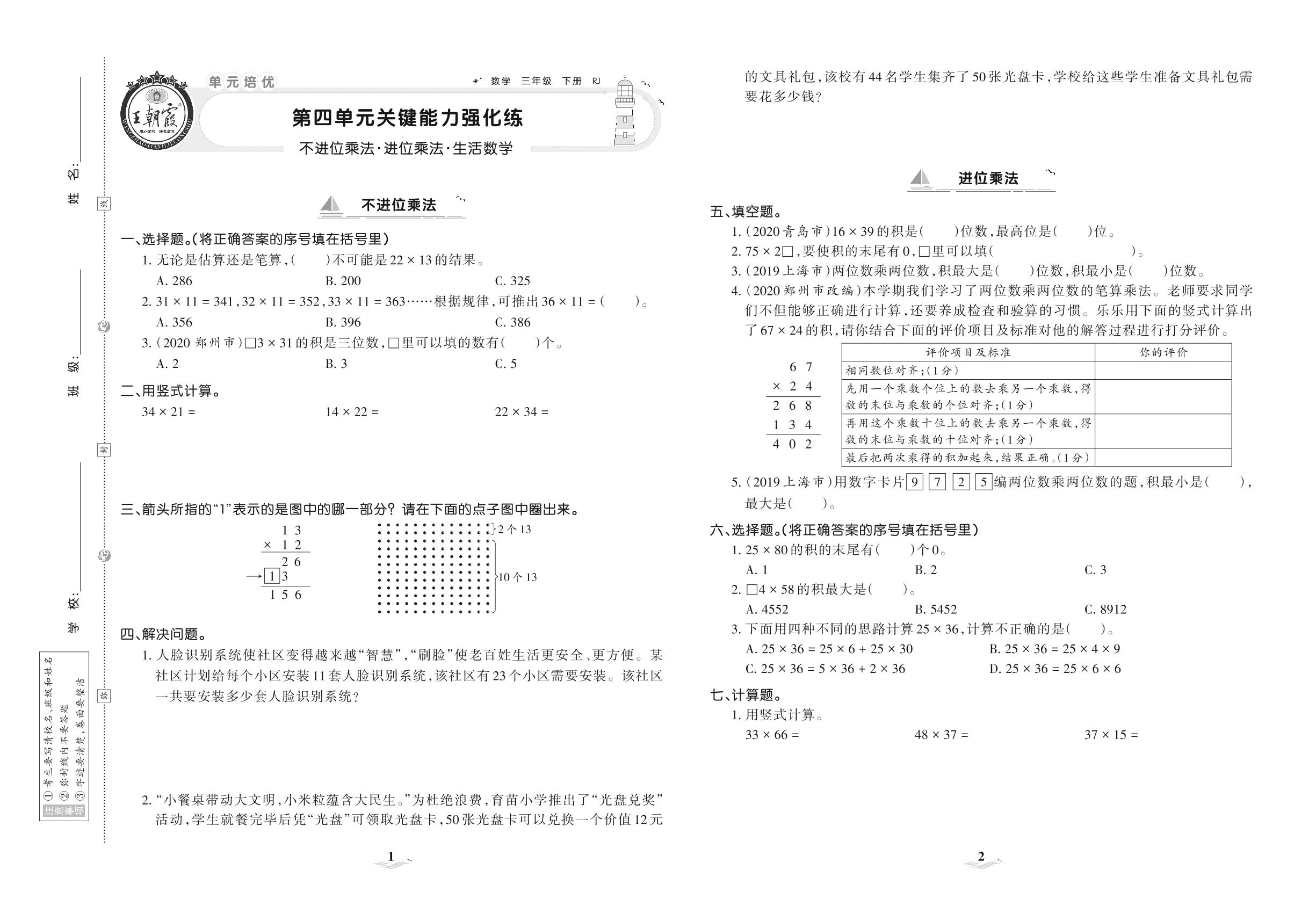 2021下册三年级数学人教版 第四单元 关键能力强化练