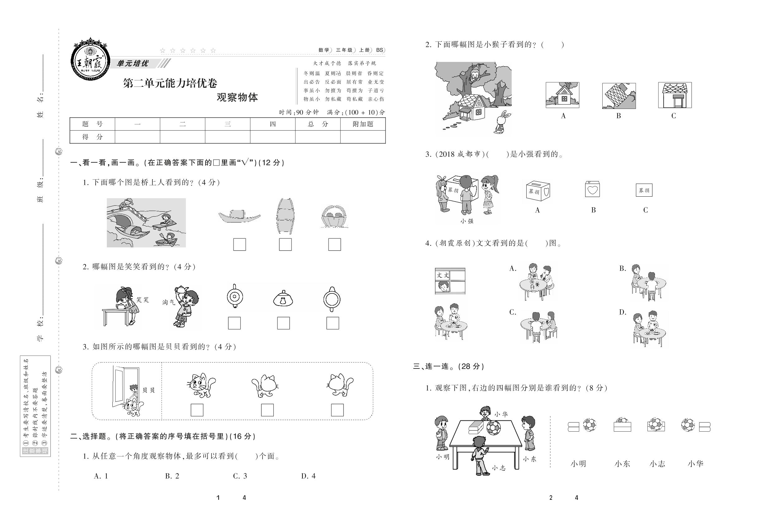 2020上册三年级数学北师版 第二单元 能力培优卷