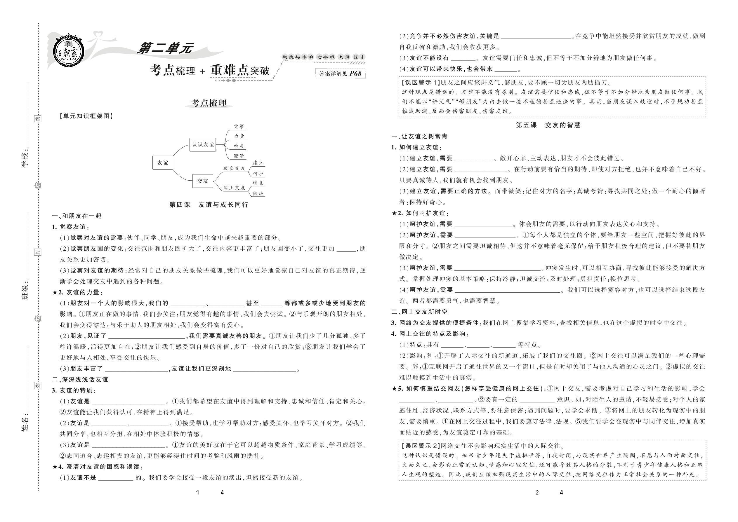 2020上册七年级道德与法治人教版 第二单元 考点梳理+重难点突破