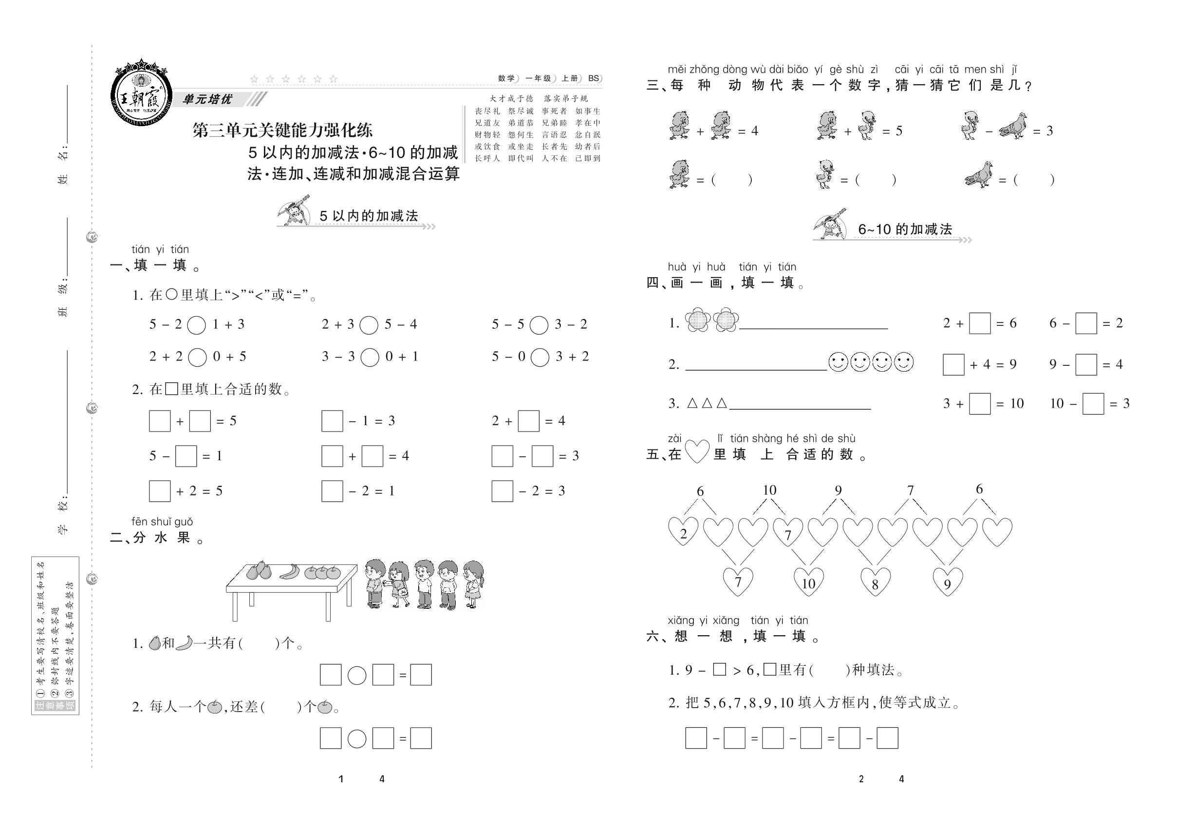 2020上册一年级数学北师版 第三单元 关键能力强化练