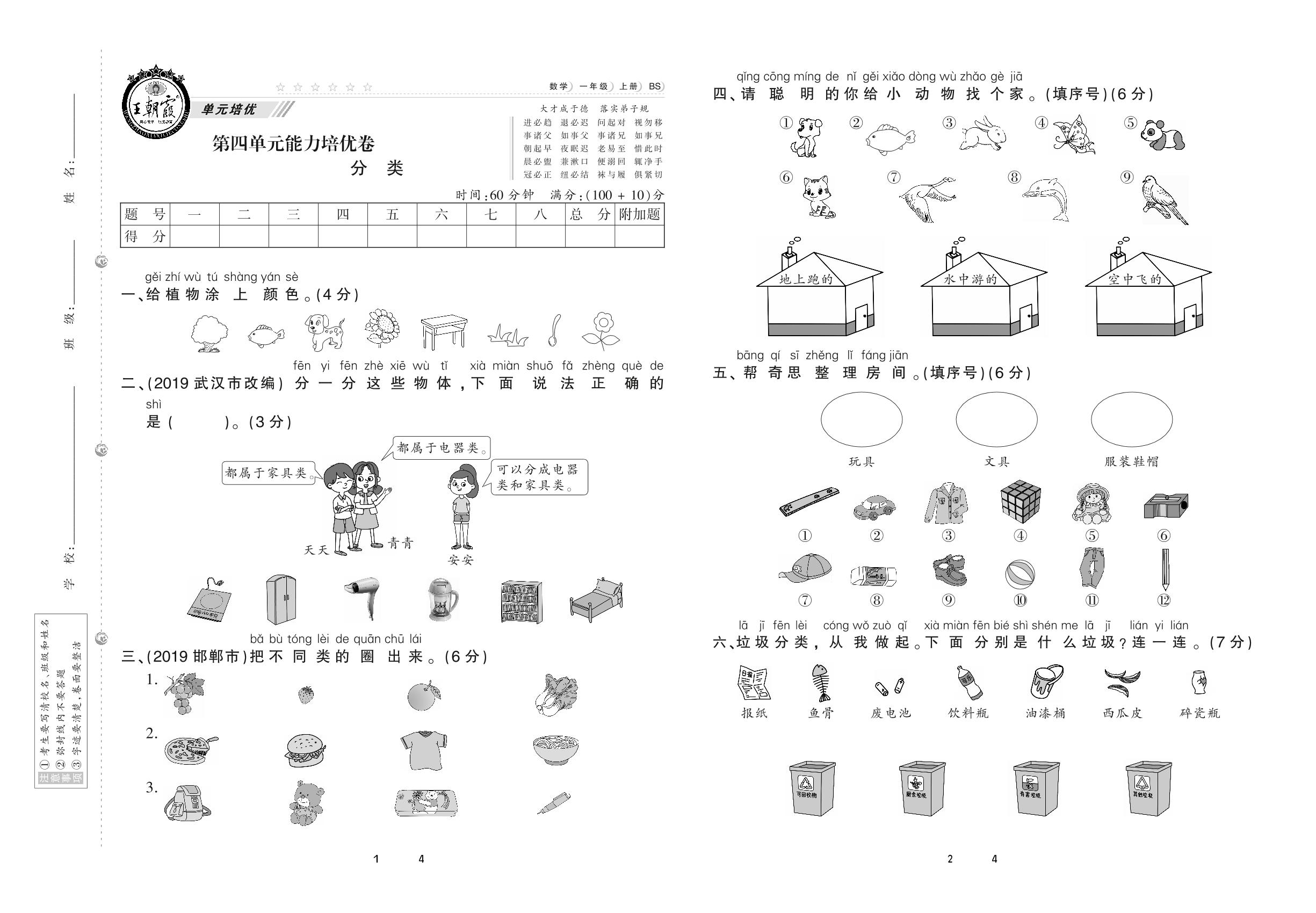 2020上册一年级数学北师版 第四单元 能力培优卷