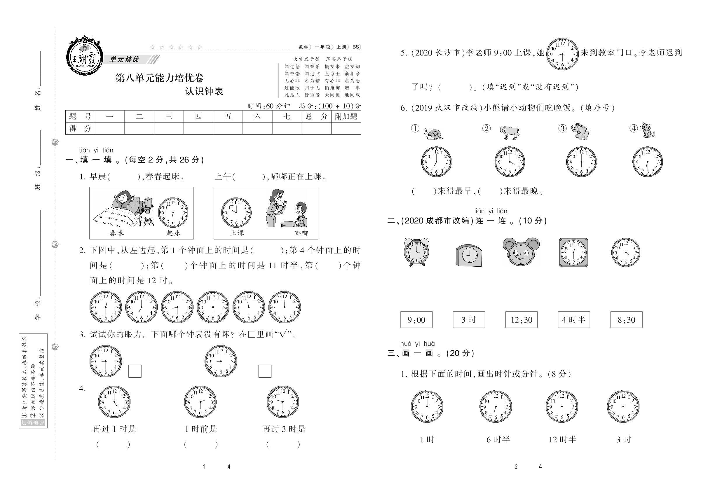 2020上册一年级数学北师版 第八单元 能力培优卷