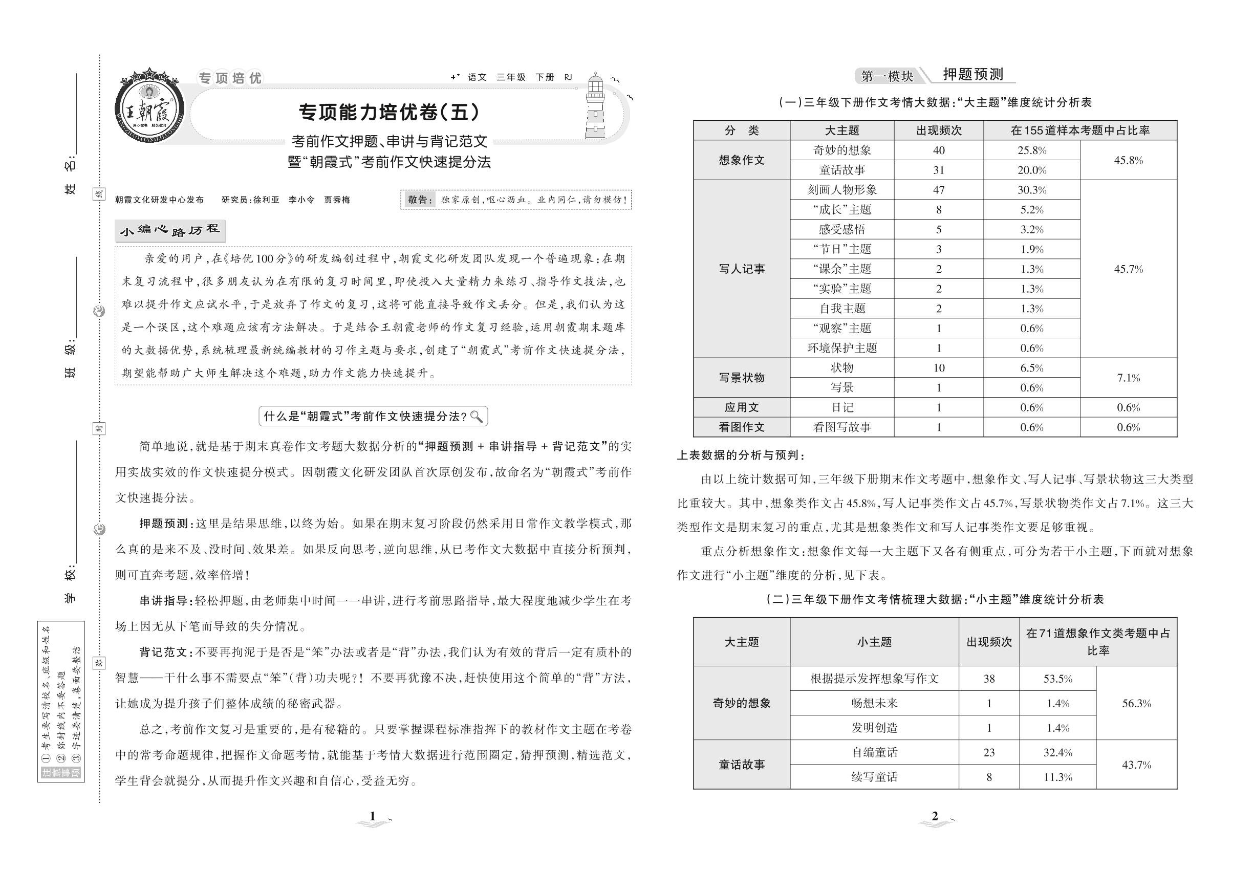 2021下册三年级语文人教版 专项能力培优卷(五) 考前作文押题、串讲与背记范文暨“朝霞式”考前作文快速提分法