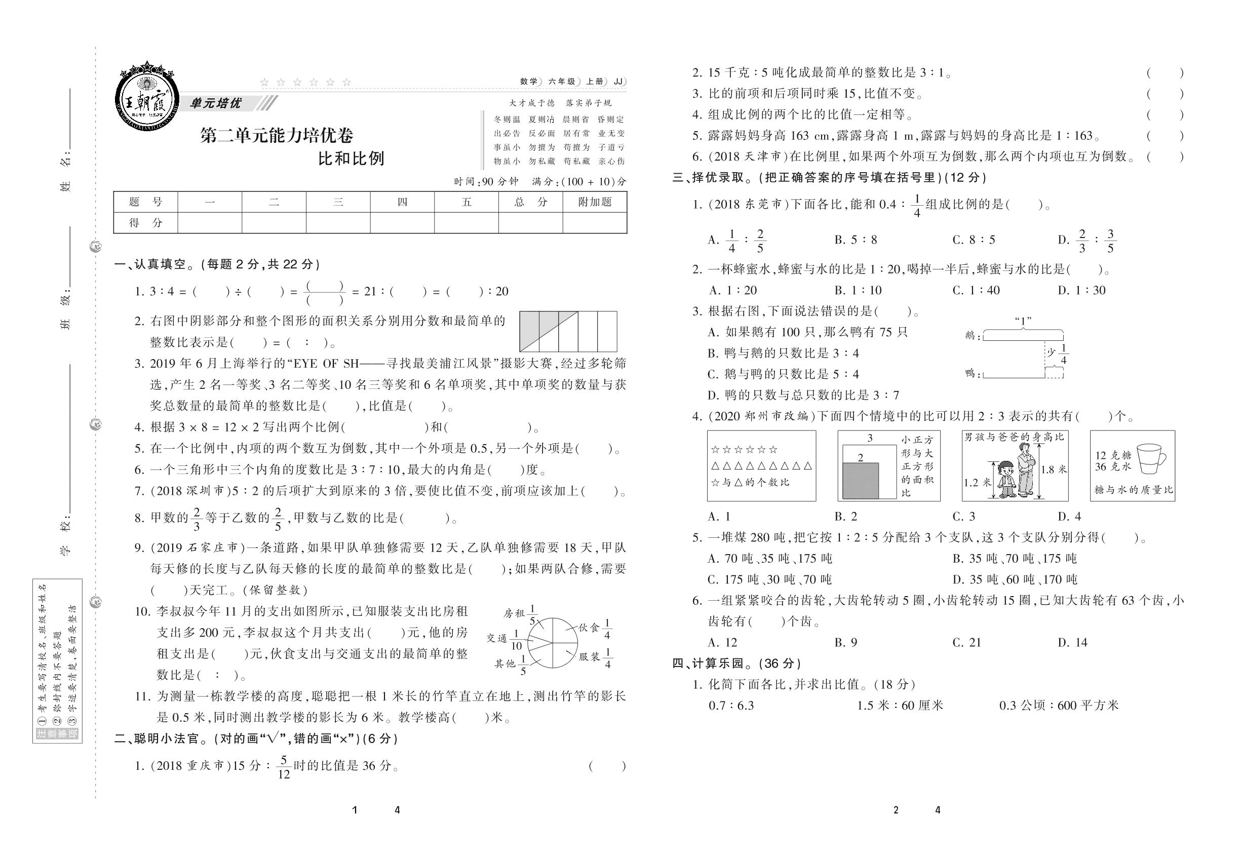 2020上册六年级数学冀教版 第二单元 能力培优卷