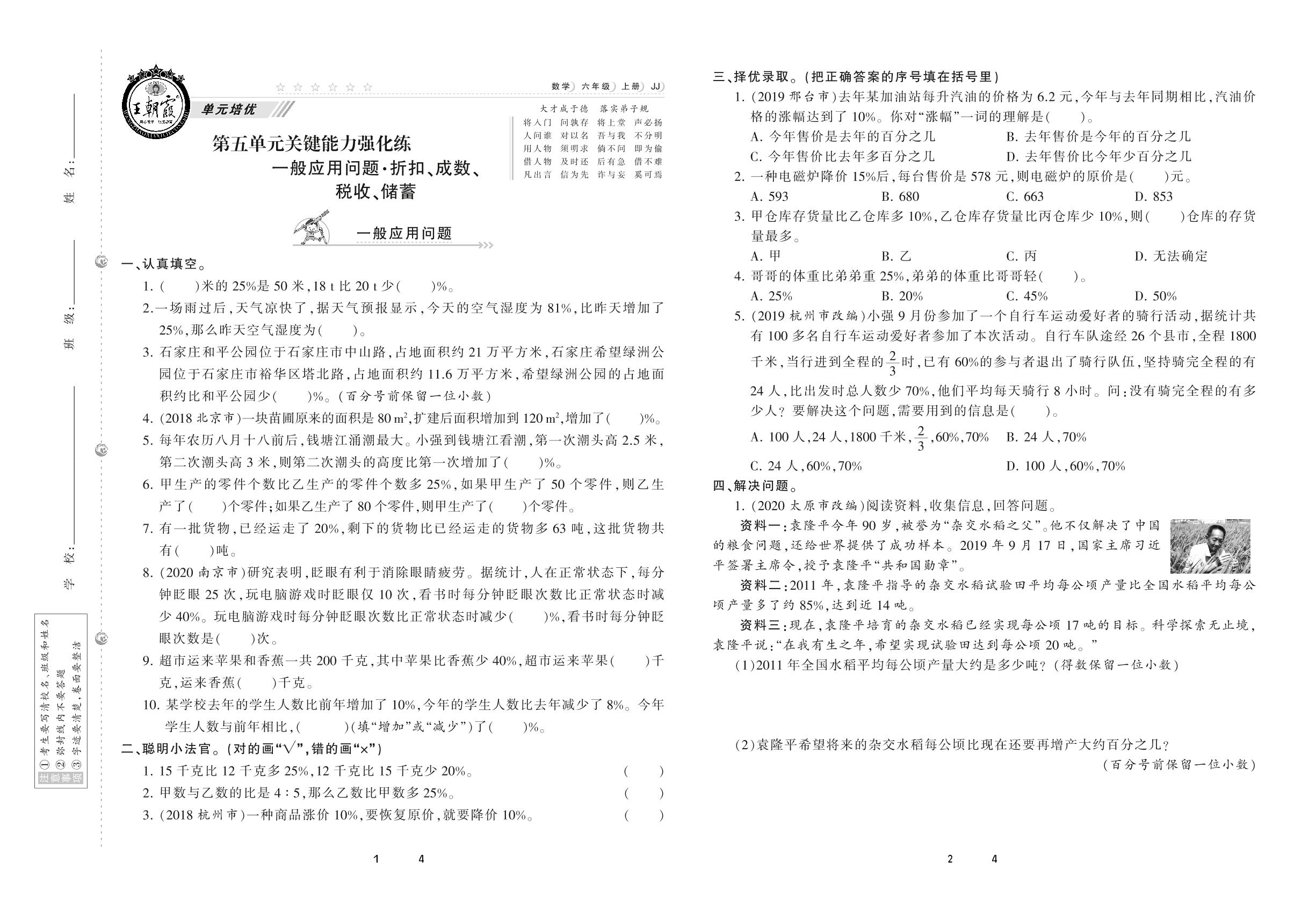 2020上册六年级数学冀教版 第五单元 关键能力强化练