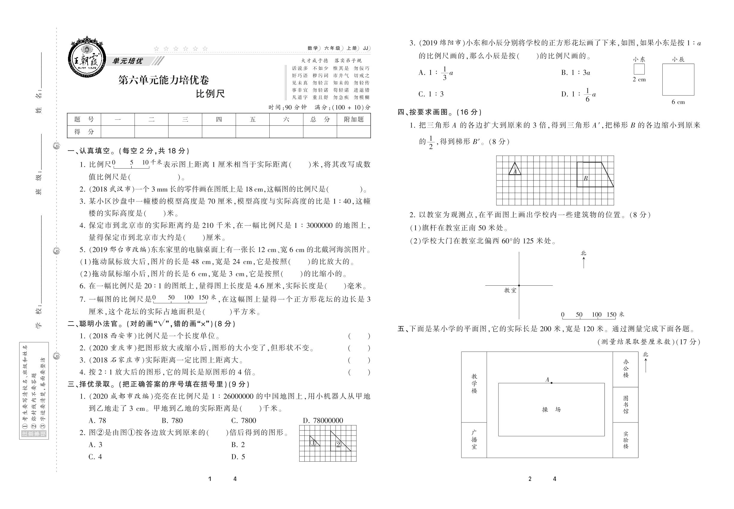 2020上册六年级数学冀教版 第六单元 能力培优卷