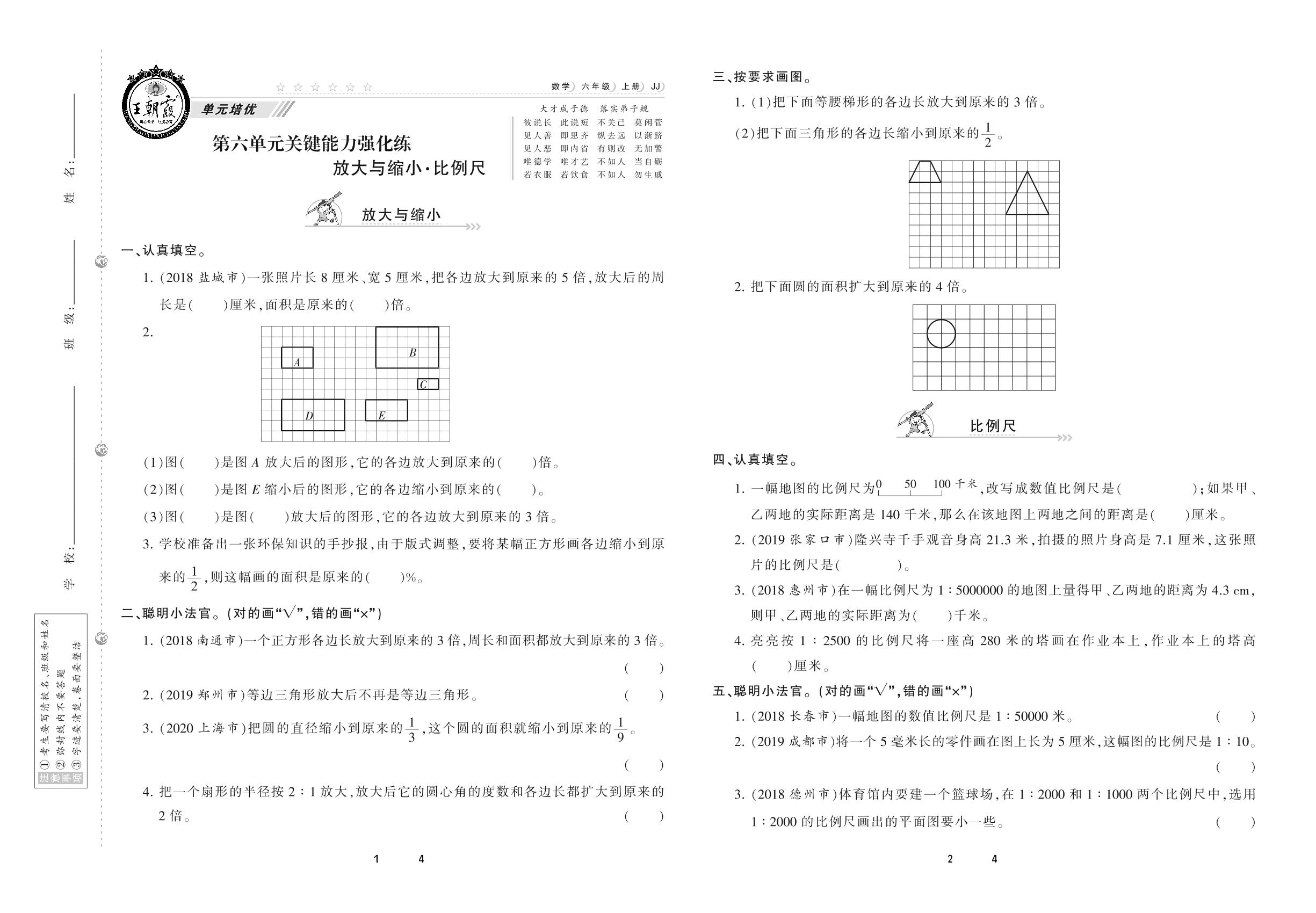 2020上册六年级数学冀教版 第六单元 关键能力强化练