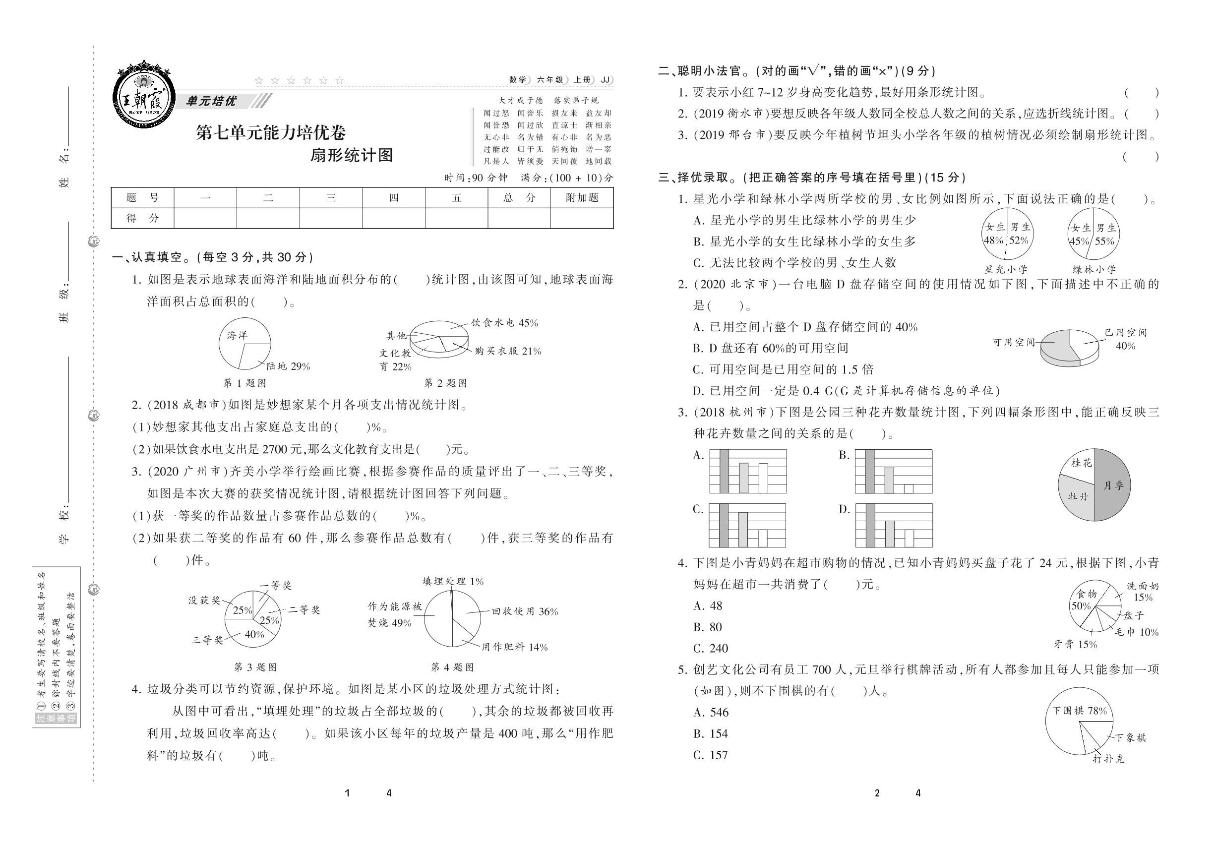 2020上册六年级数学冀教版 第七单元 能力培优卷