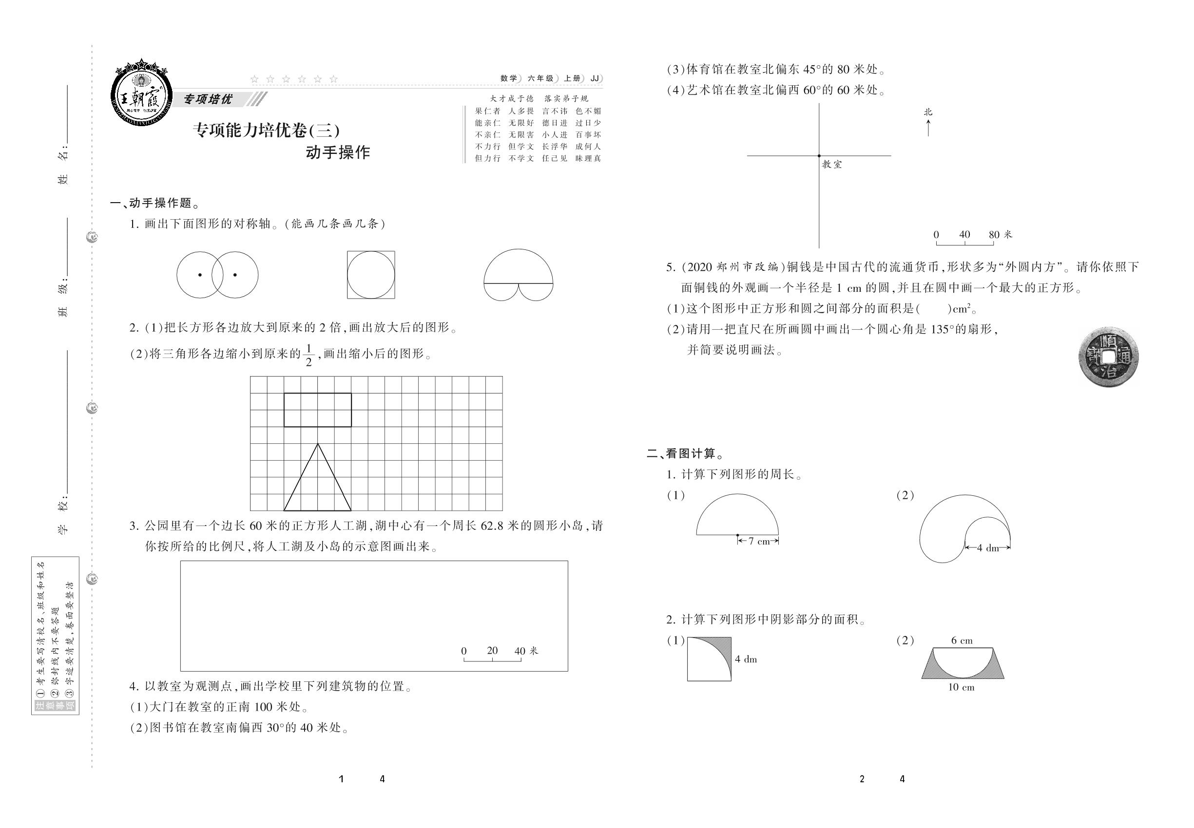 2020上册六年级数学冀教版 专项能力培优卷(三) 动手操作