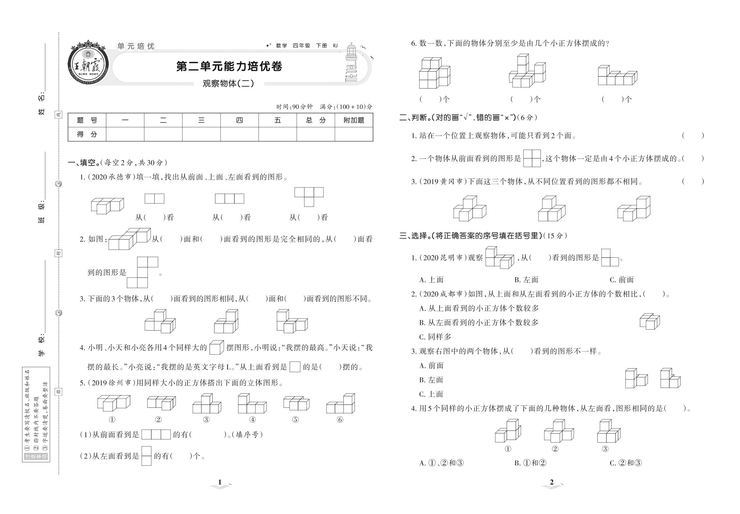 2021下册四年级数学人教版 第二单元 能力培优卷