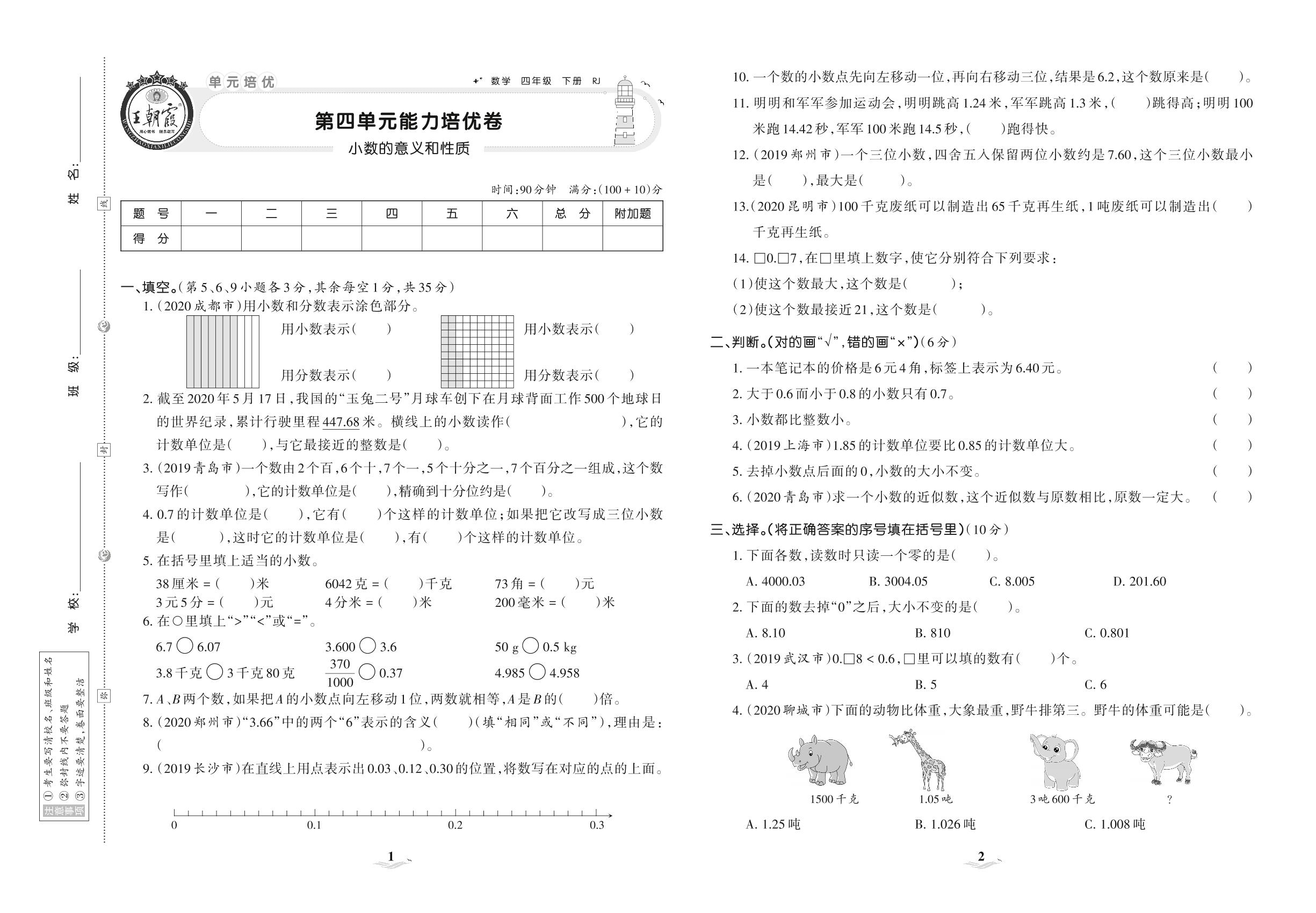 2021下册四年级数学人教版 第四单元 能力培优卷