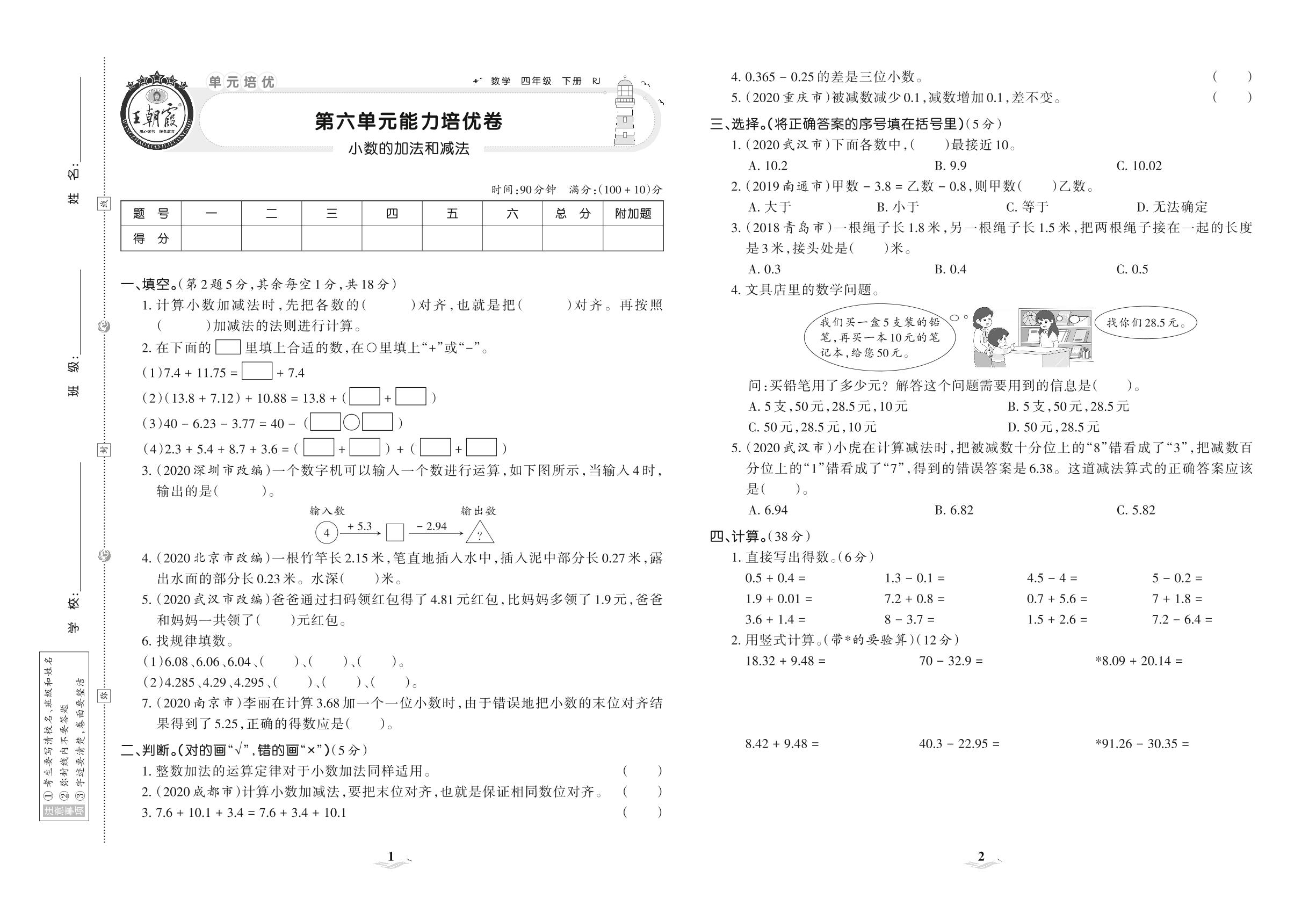 2021下册四年级数学人教版 第六单元 能力培优卷