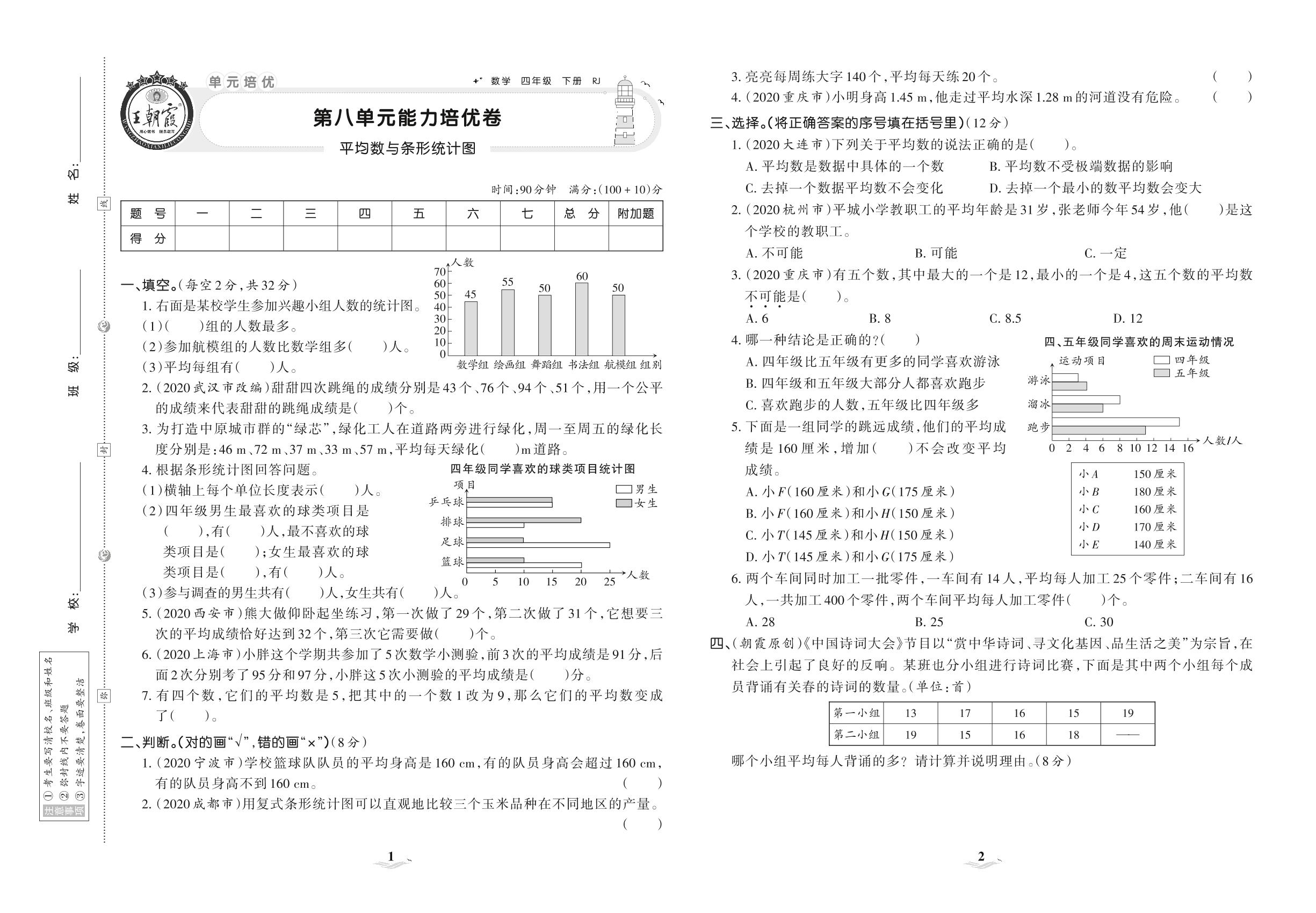 2021下册四年级数学人教版 第八单元 能力培优卷
