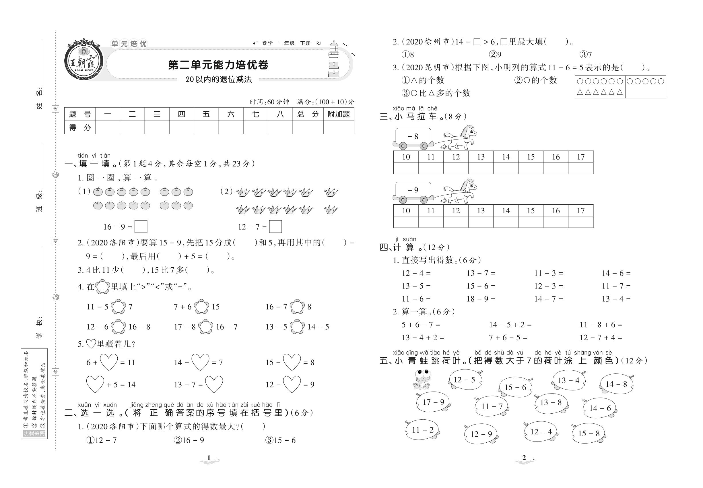 2021下册一年级数学人教版 第二单元 能力培优卷