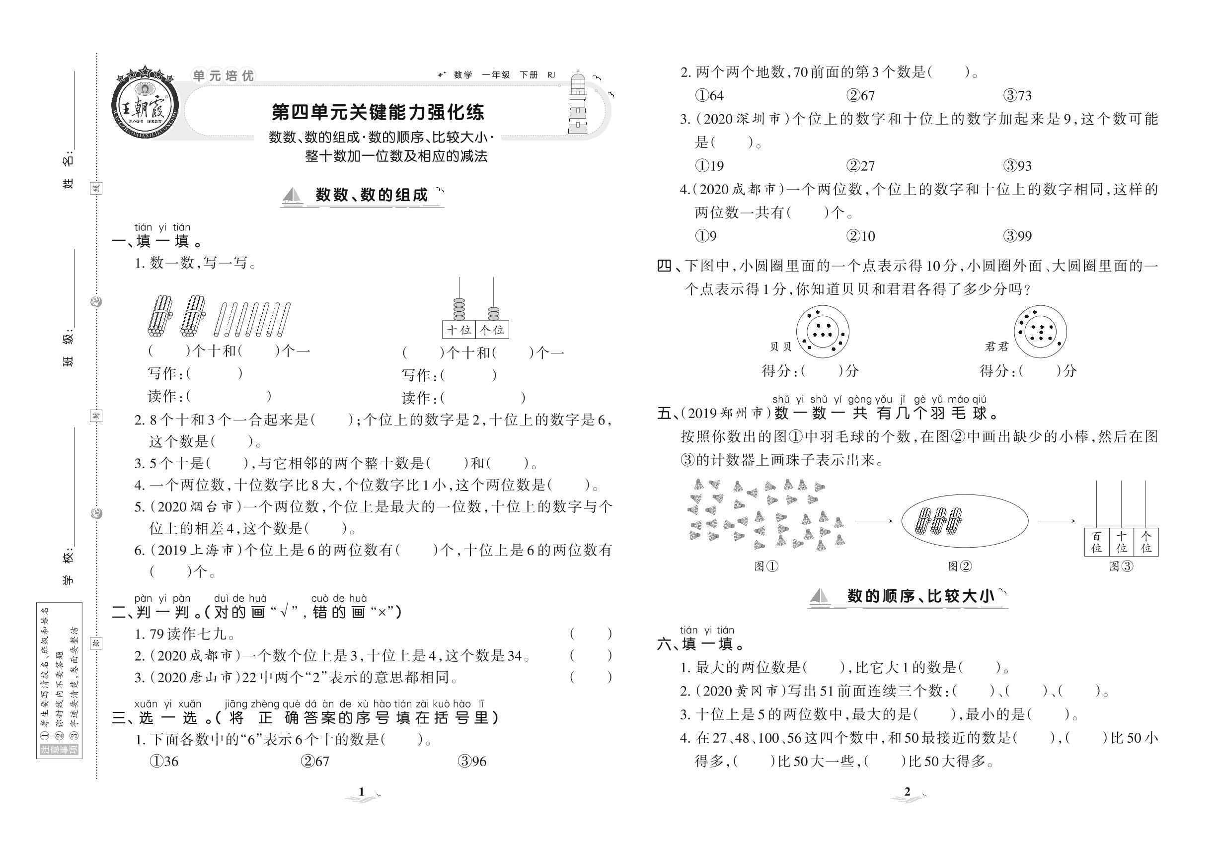 2021下册一年级数学人教版 第四单元 关键能力强化练