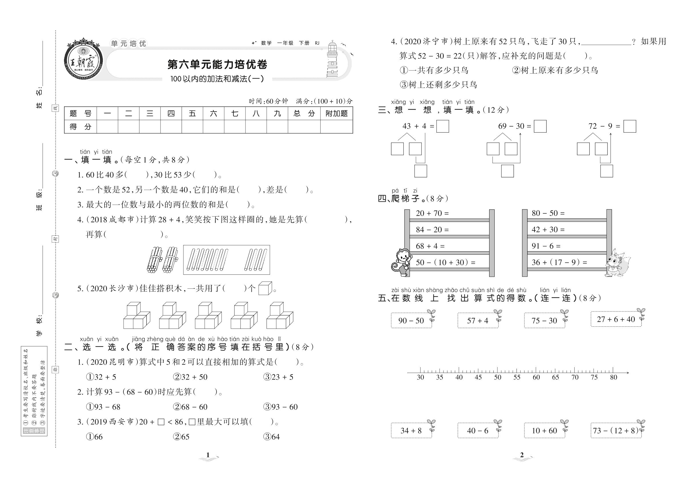 2021下册一年级数学人教版 第六单元 能力培优卷