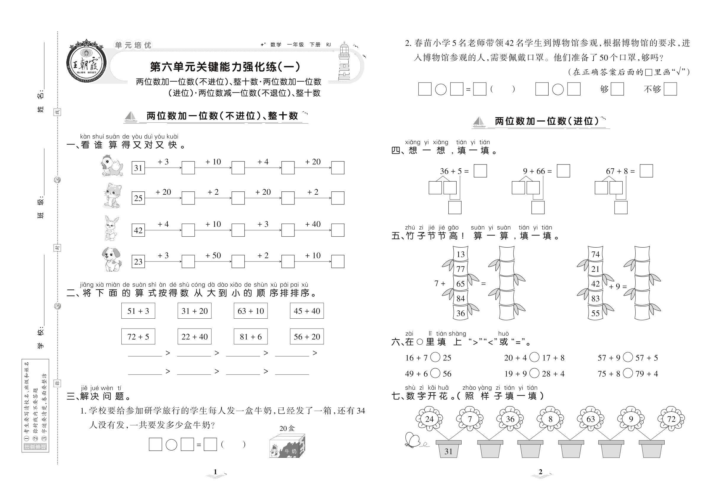 一年级数学人教版下册单元卷
