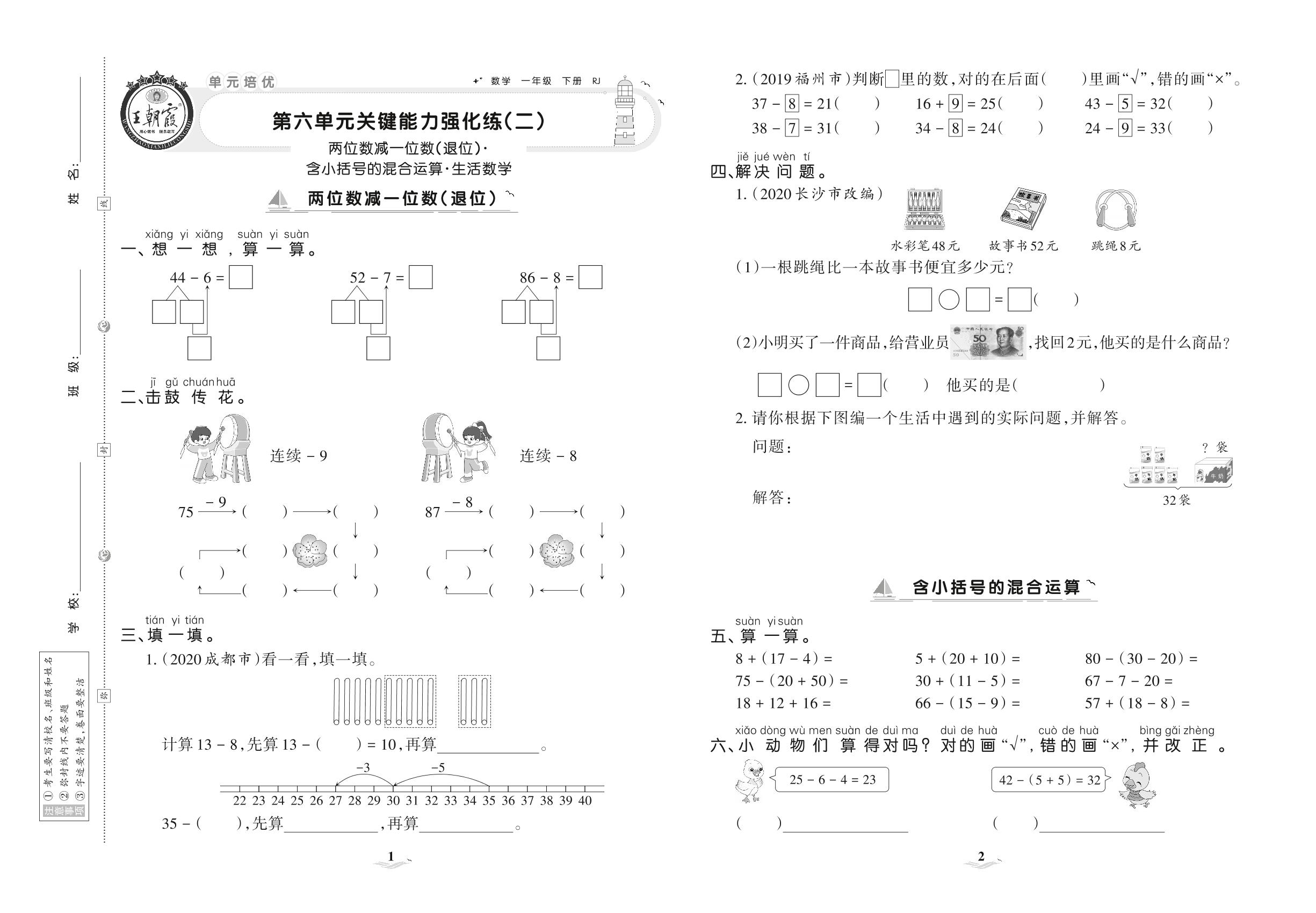 一年级数学人教版下册单元卷