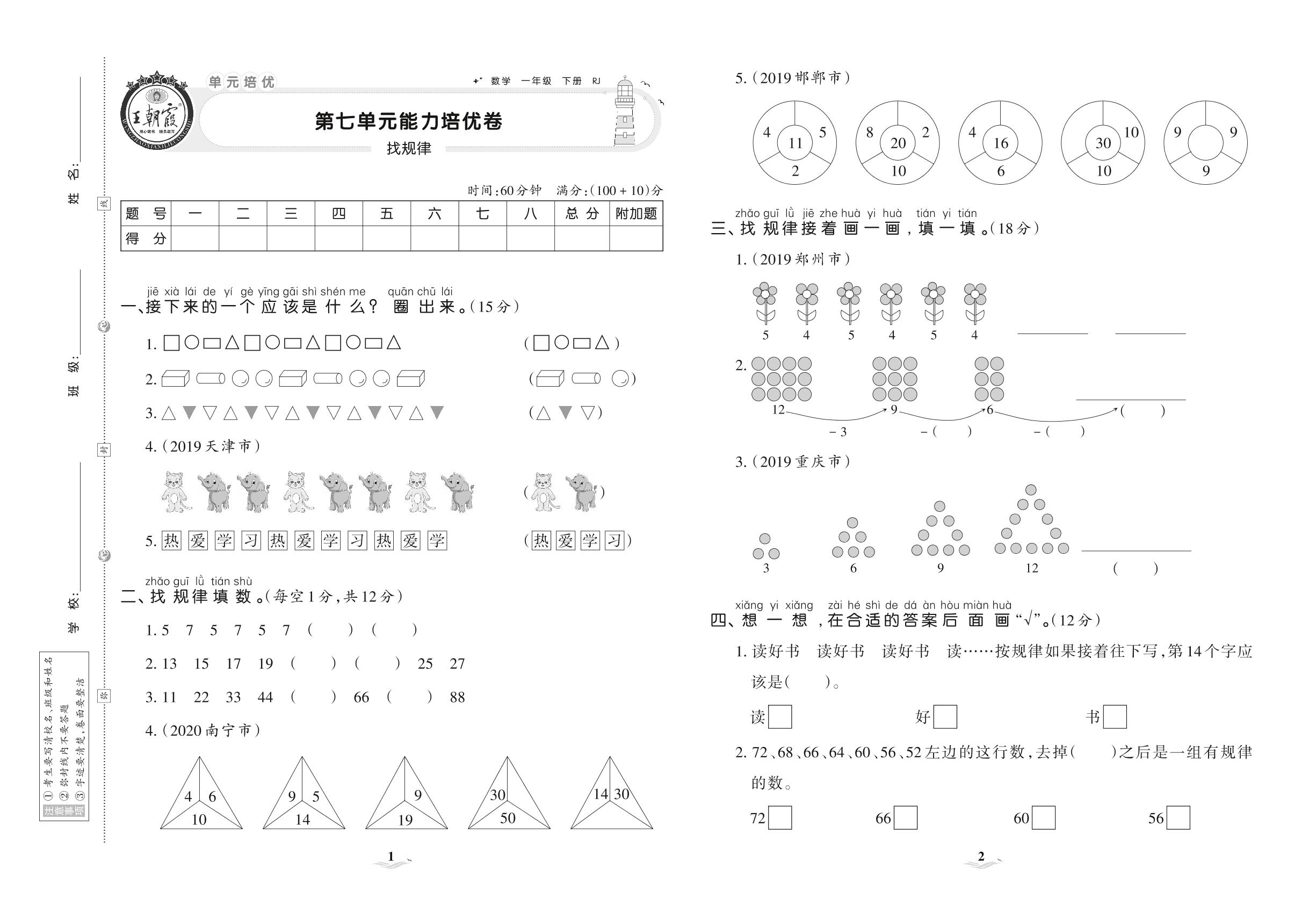 2021下册一年级数学人教版 第七单元 能力培优卷