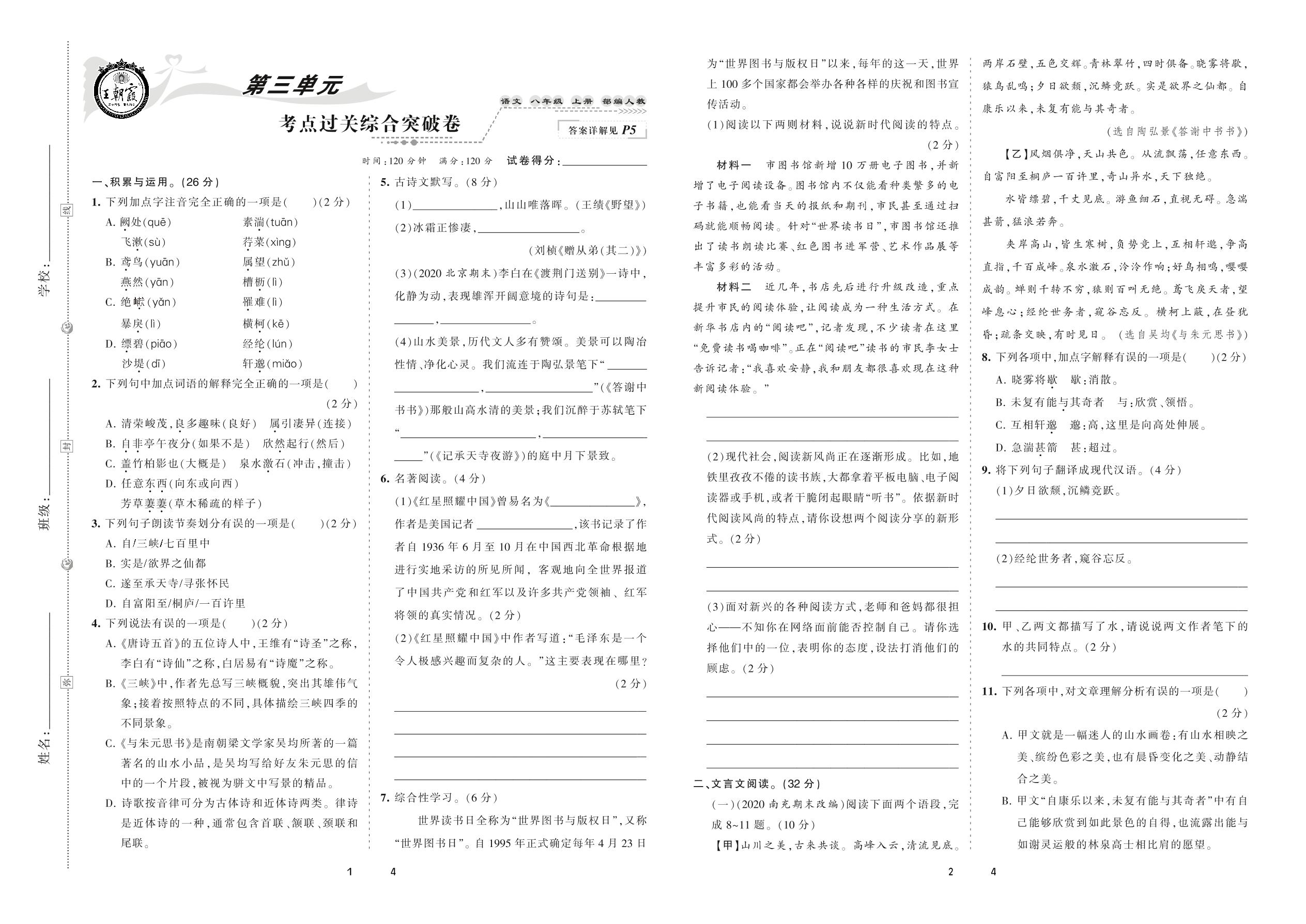 2020上册八年级语文人教版 第三单元 考点过关综合突破卷