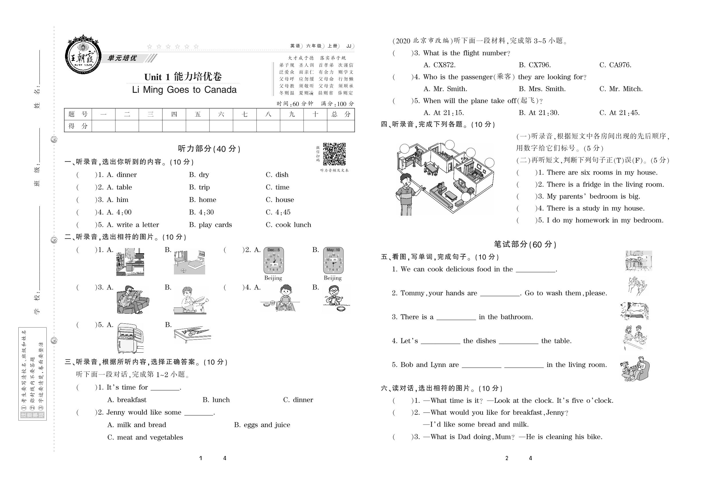2020上册六年级英语冀教版 Unit 1 能力培优卷