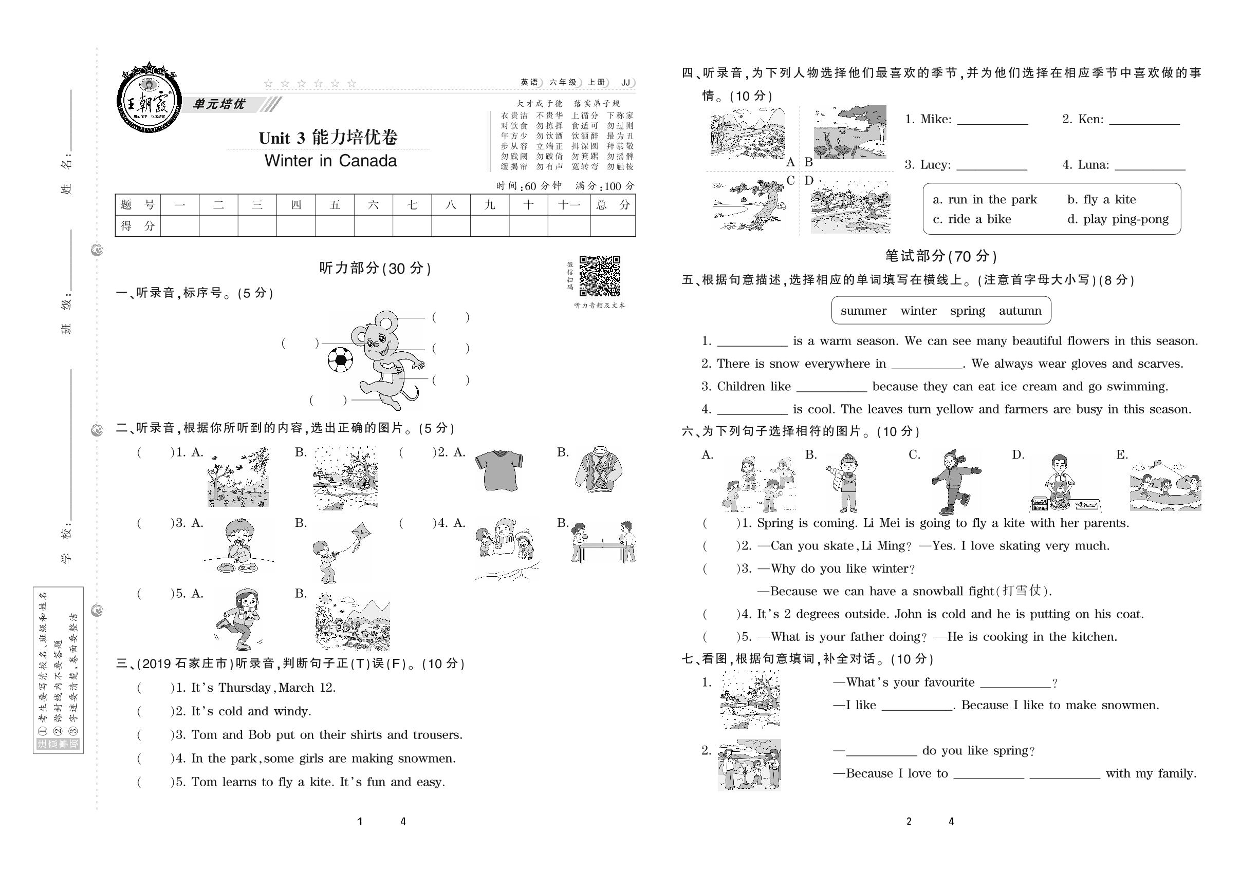 2020上册六年级英语冀教版 Unit 3 能力培优卷