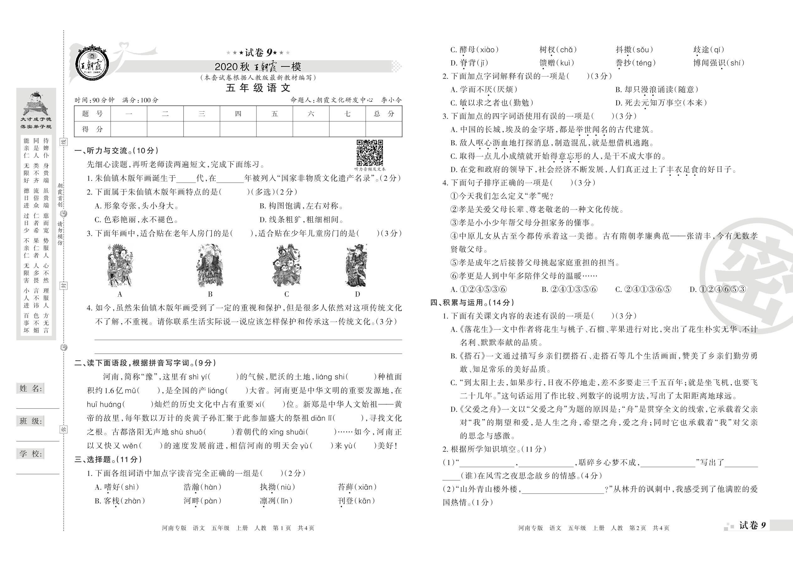 王朝霞期末模拟卷五年级上册语文(人教版)_R210801184227【9】