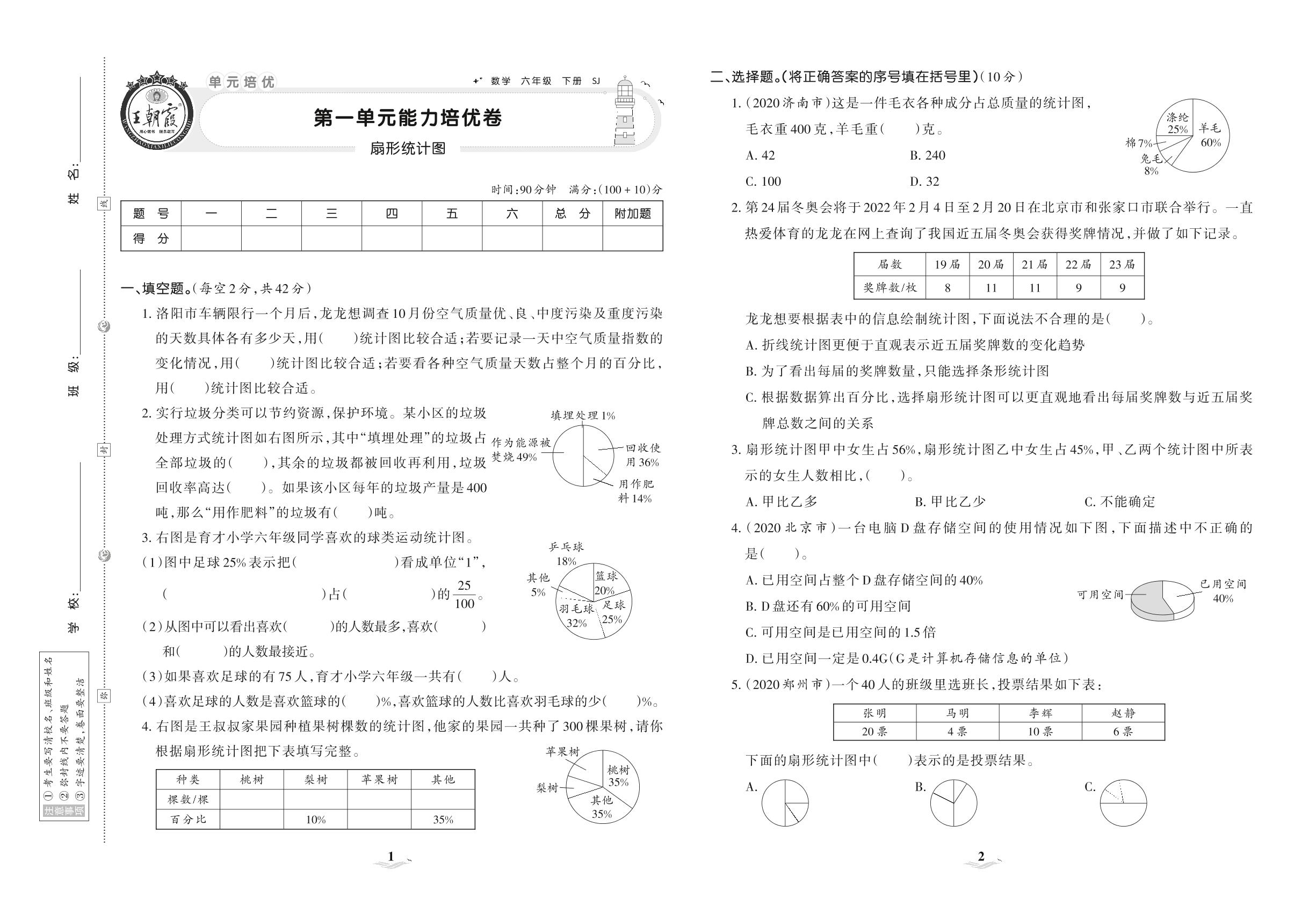 2021下册六年级数学苏教版 第一单元 能力培优卷
