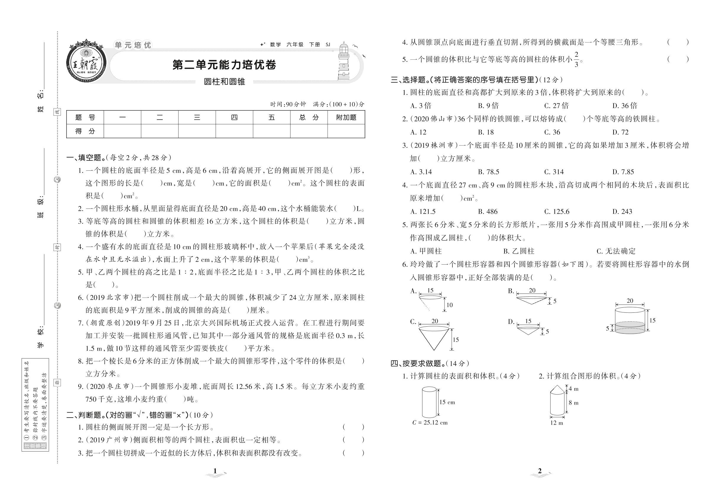 2021下册六年级数学苏教版 第二单元 能力培优卷