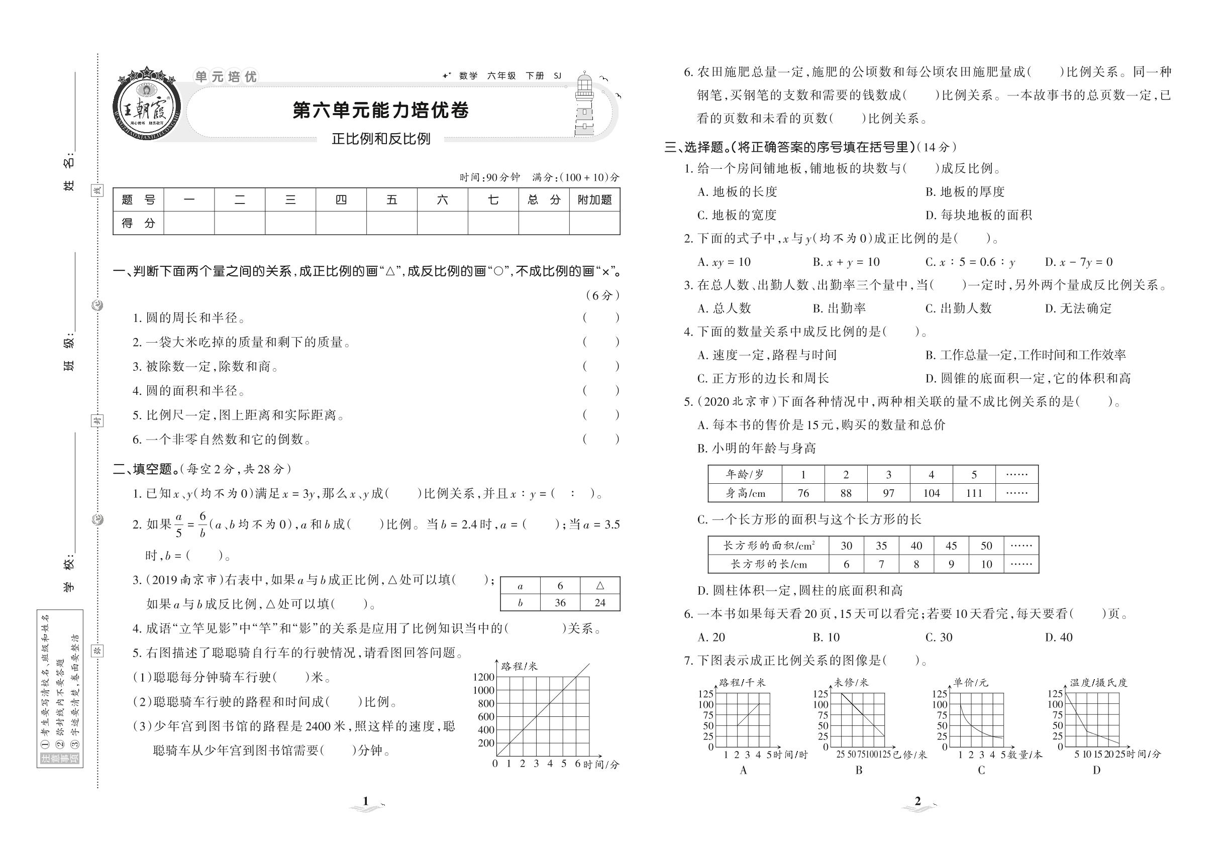2021下册六年级数学苏教版 第六单元 能力培优卷