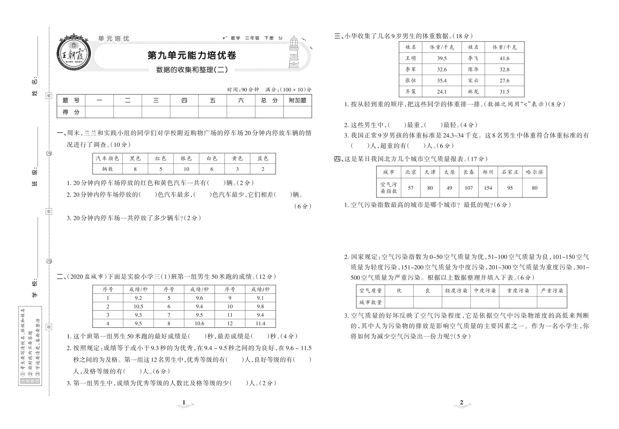 2021下册三年级数学苏教版 第九单元 能力培优卷