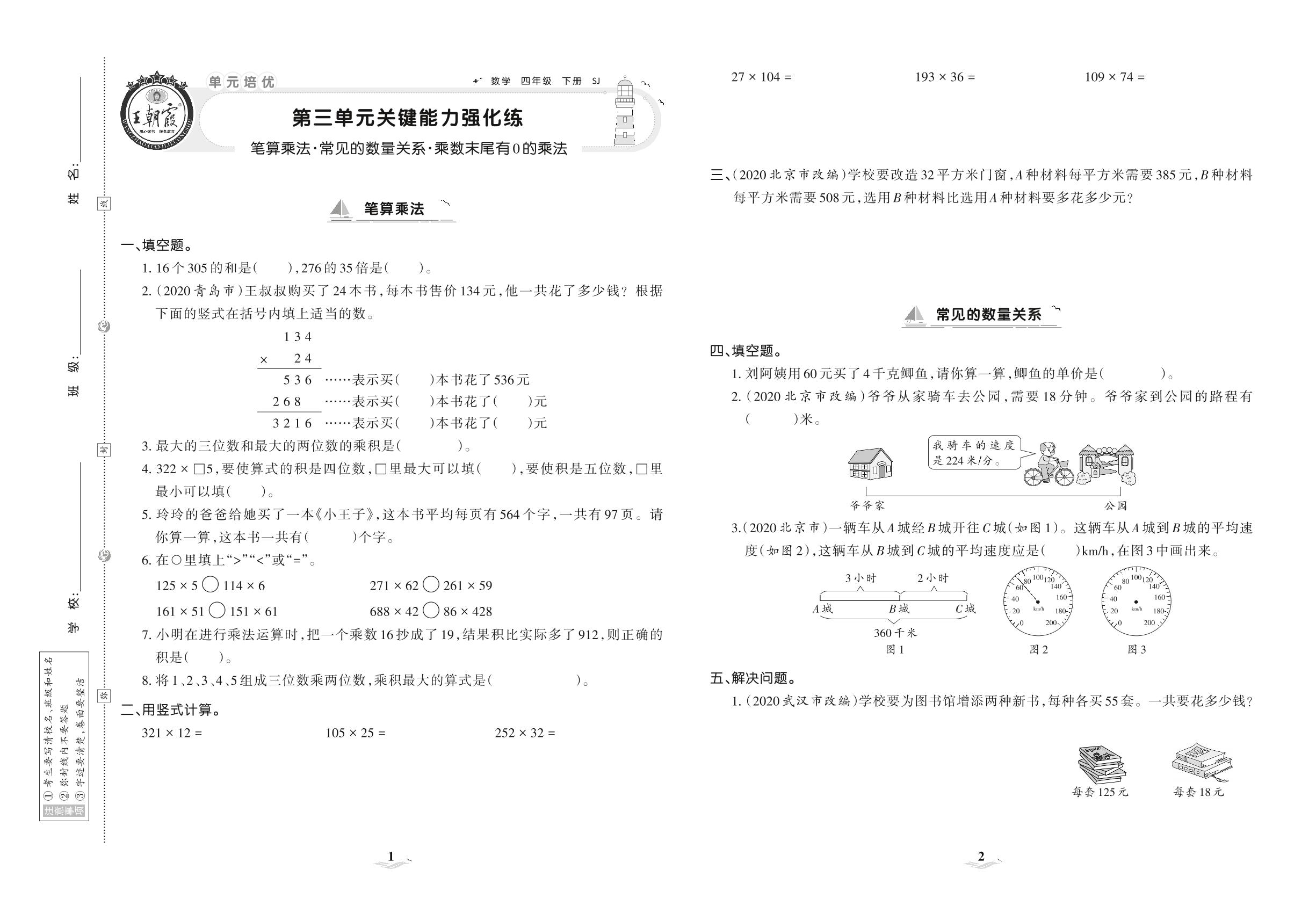 2021下册四年级数学苏教版 第三单元 关键能力强化练