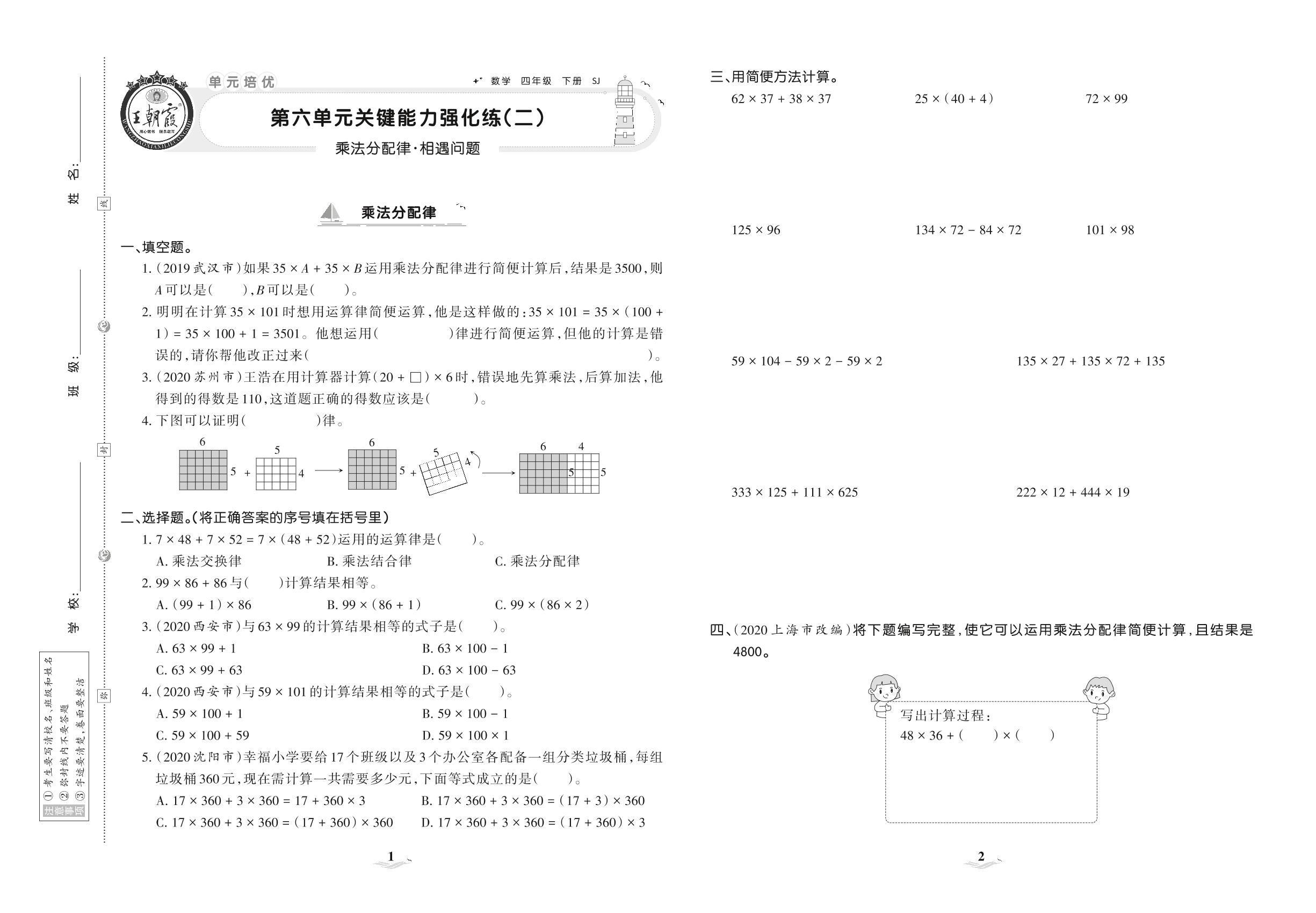 2021下册四年级数学苏教版 第六单元 关键能力强化练(二)