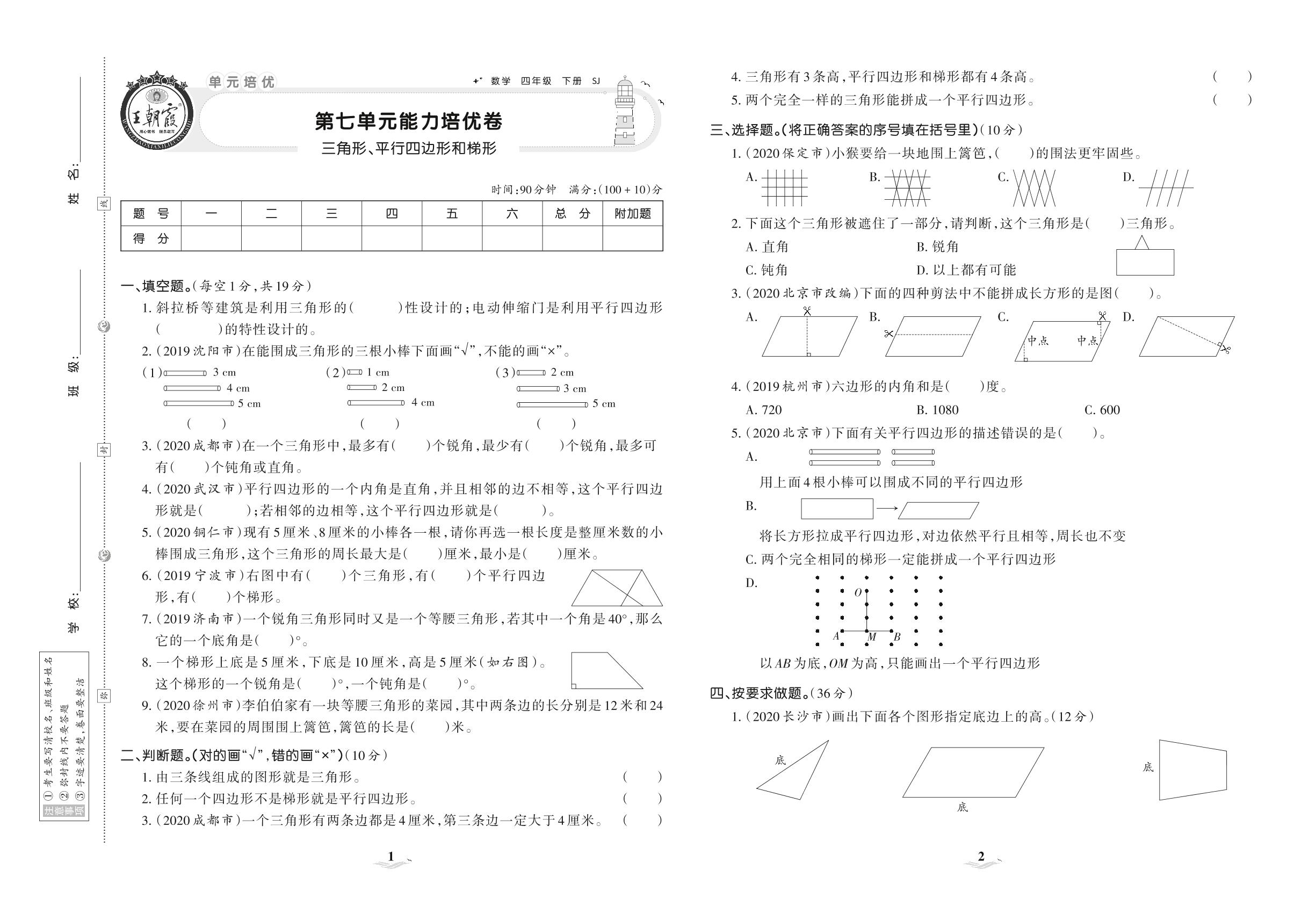 2021下册四年级数学苏教版 第七单元 能力培优卷