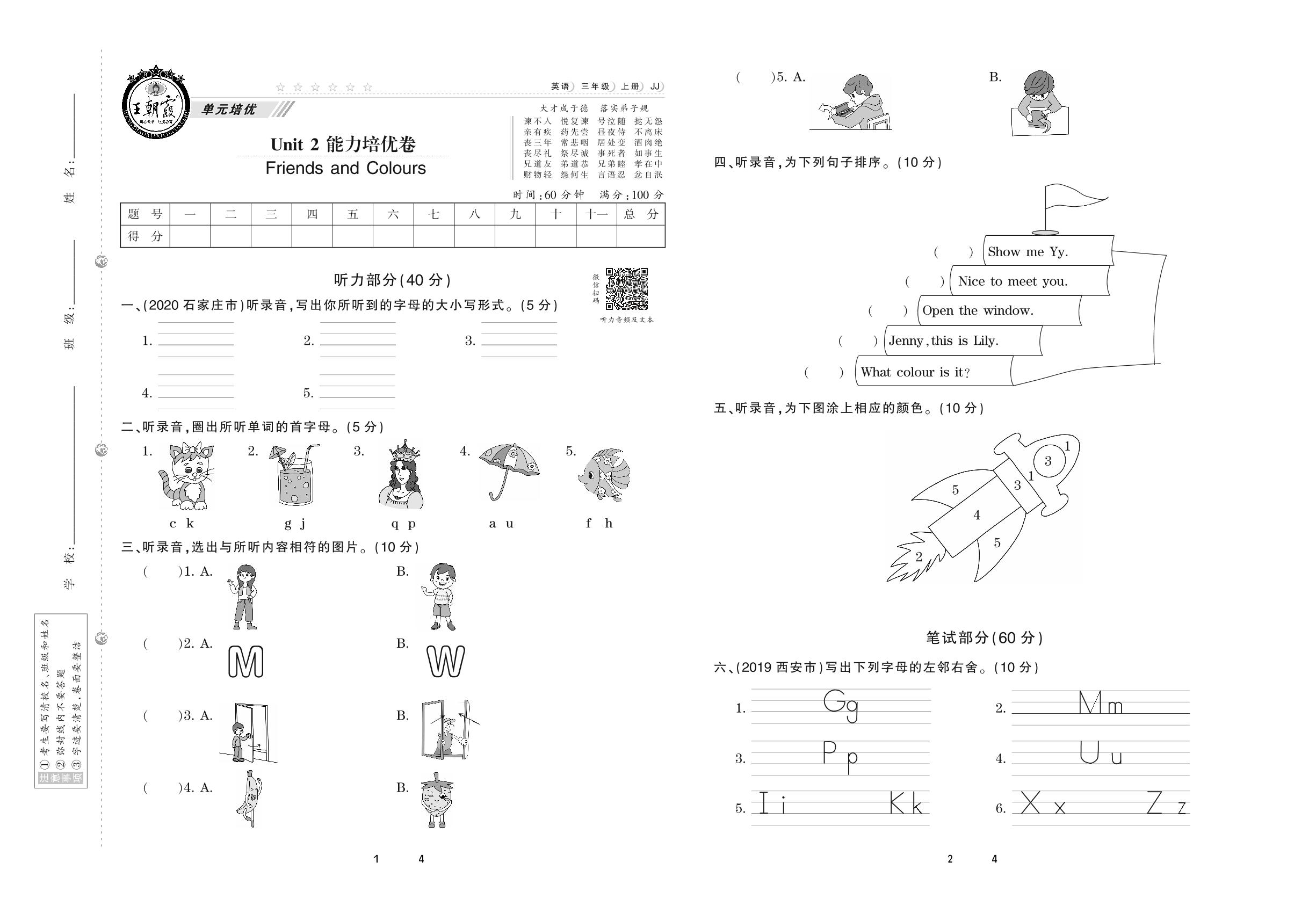 2020上册三年级英语冀教版 Unit 2 能力培优卷