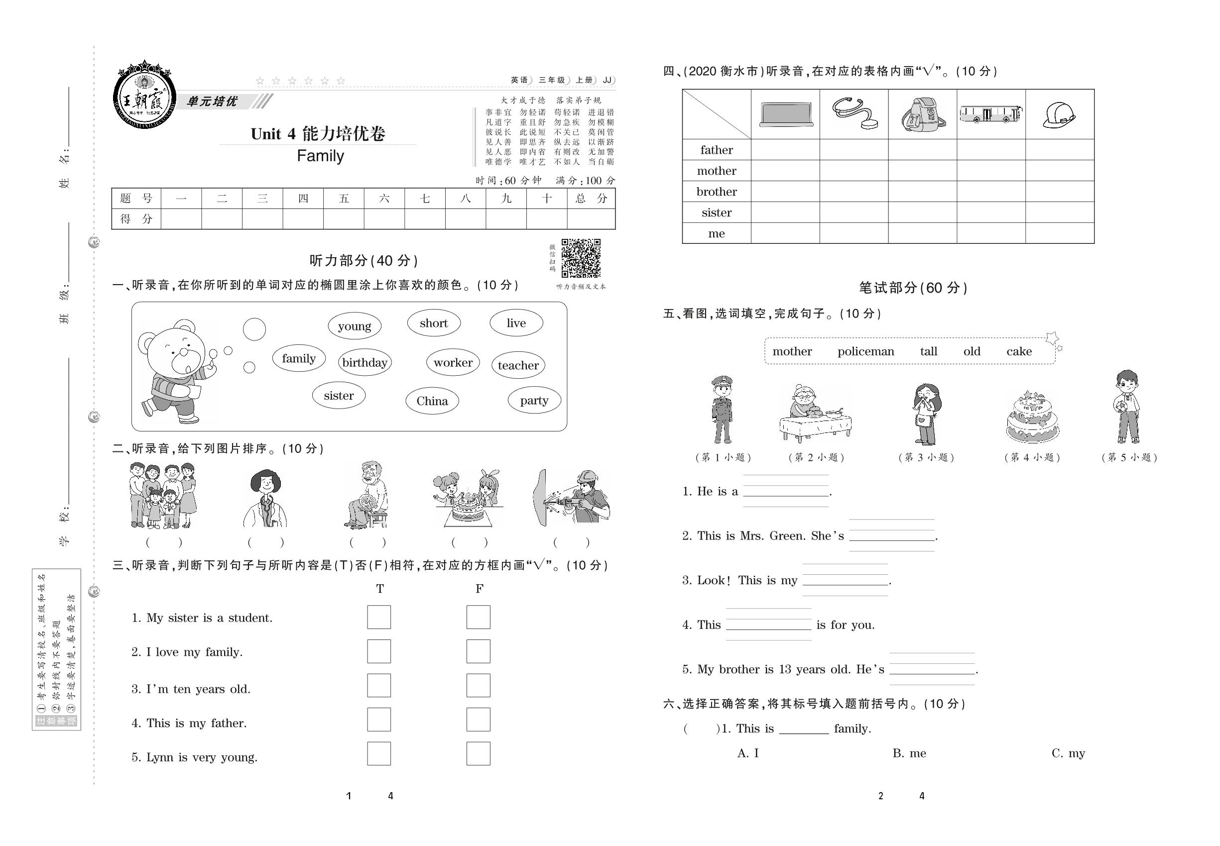 2020上册三年级英语冀教版 Unit 4 能力培优卷