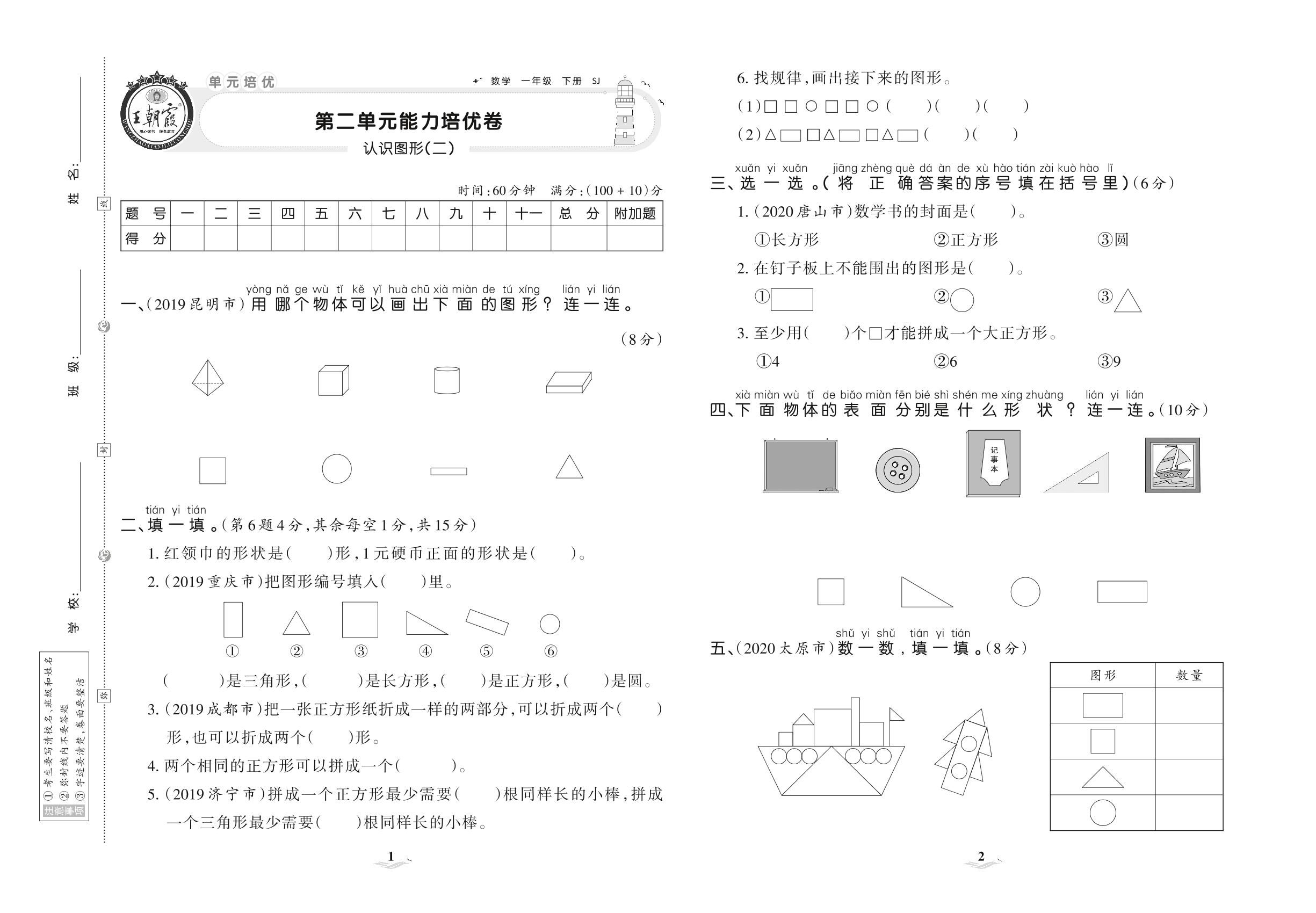 2021下册一年级数学苏教版 第二单元 能力培优卷