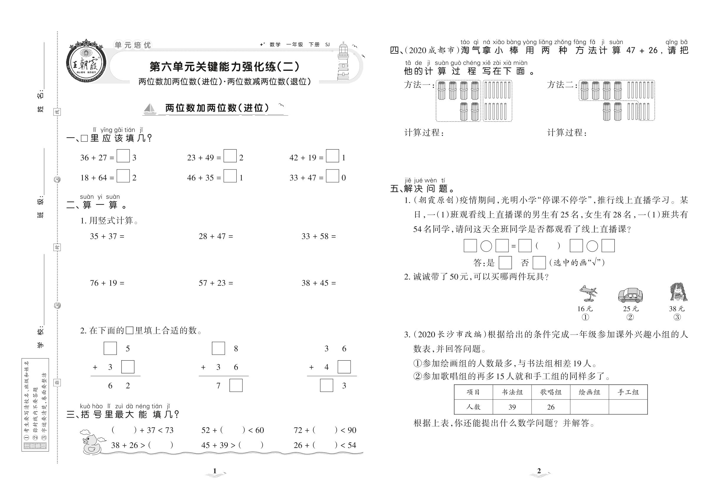 2021下册一年级数学苏教版 第六单元 关键能力强化练(二)